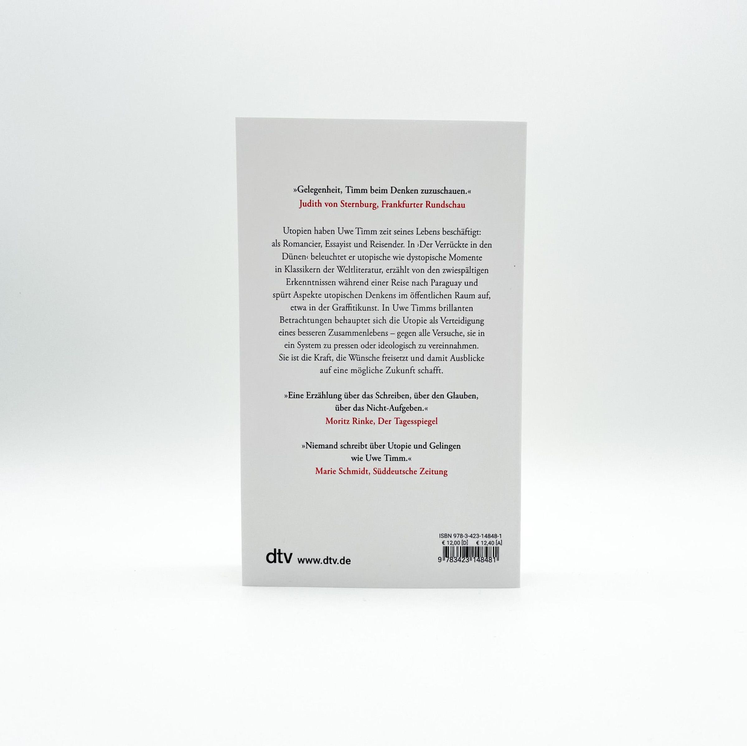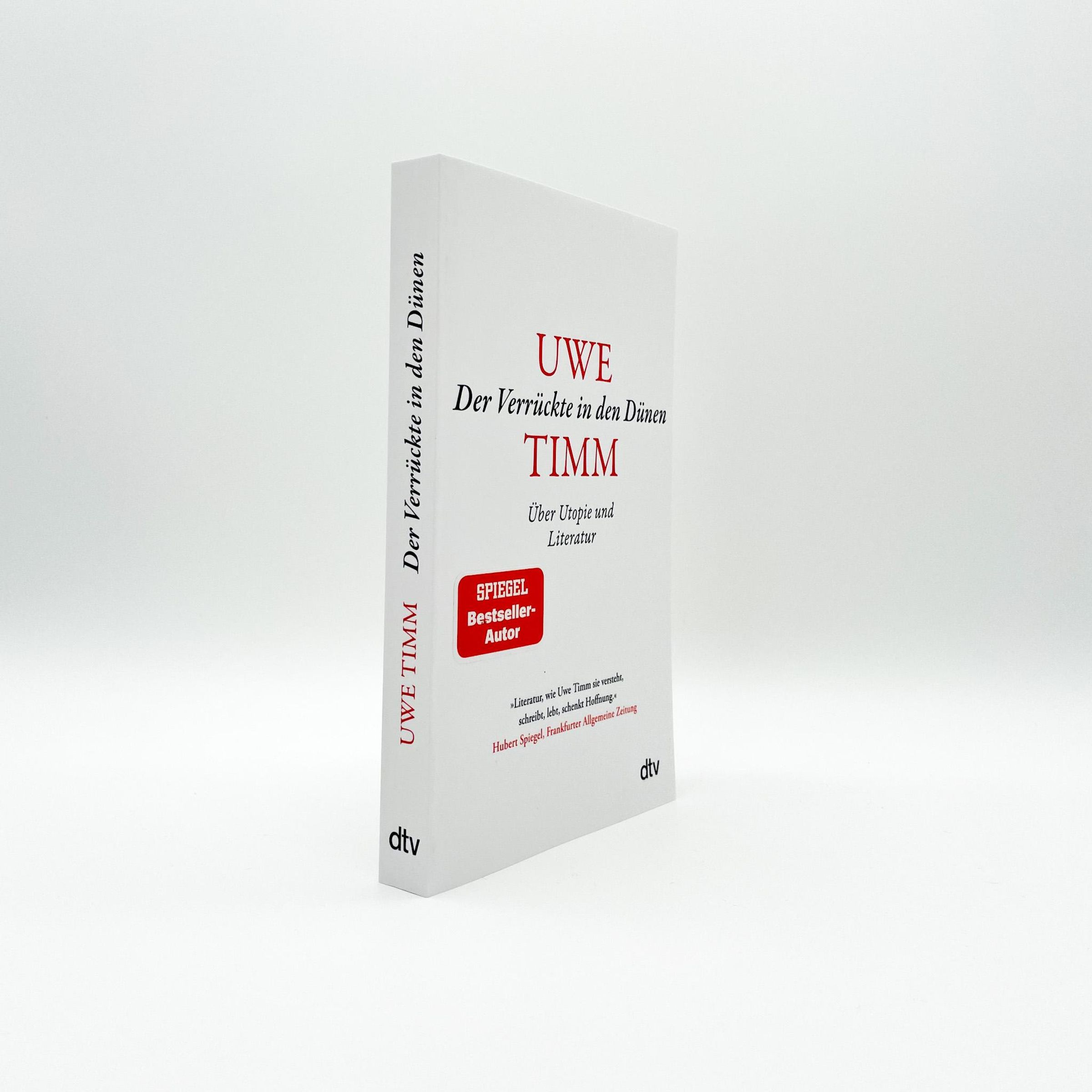 "Uwe, Der Verrückte in den Dünen, Über Utopie und Literatur." "SPIEGEL Bestseller-Autor". "dtv"-Logo unten rechts., Buch