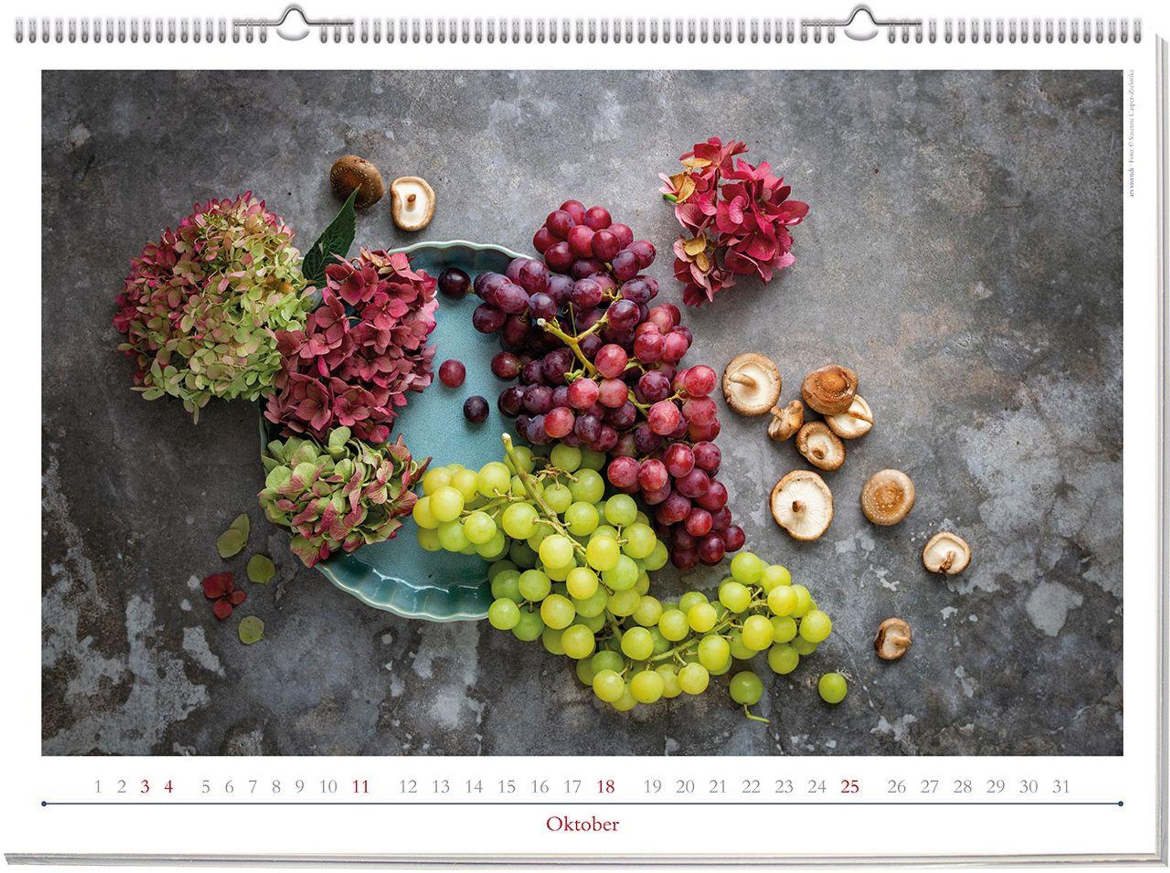 Der Wandkalender Essen & Trinken 2027 zeigt kulinarische Motive in eleganten, stimmungsvollen Fotografien von Valerie Hammacher.