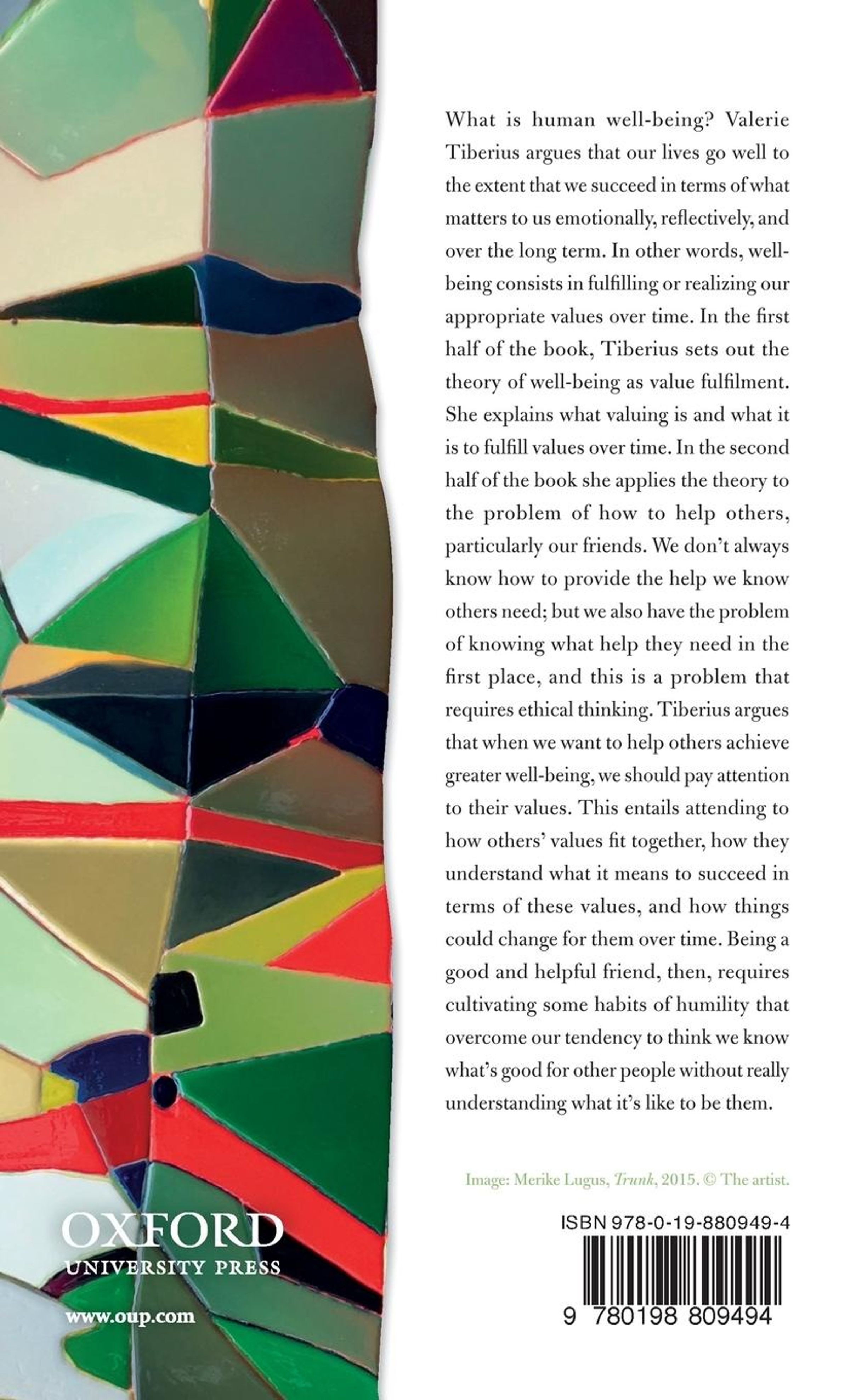 What is human well-being? Valerie Tiberius argues that our lives go well to the extent that we succeed in terms of what matters to us emotionally, reflectively, and over the long term. In other words, well-being consists in fulfilling or realizing our appropriate values over time. In the first half of this book, Tiberius sets out the theory of well-being as value fulfilment. She explains what valuing is and what it is to fulfill values over time. In the second half of the book she applies the theory to the problem of how to help others, particularly our friends. We don't always know how to provide the help we know others need; but we also have the problem of knowing what help they need in the first place, and this is a problem that requires ethical thinking. Tiberius argues that when we want to help others achieve greater well-being, we should pay attention to their values. This entails attending to how others' values fit together, how they understand what it means to succeed in terms of these values, and how things could change for them over time. Being a good and helpful friend, then, requires cultivating some habits of humility that overcome our tendency to think we know what's good for other people without really understanding what it's like to be them.
