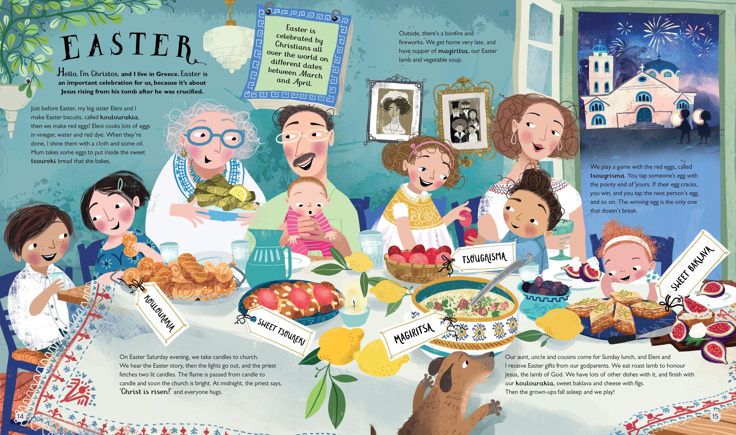 From a feast for monkeys in Thailand to gifts from Grandfather Frost in Ukraine, twenty children from around the world introduce us to their favourite feasts, festivals and celebrations.
