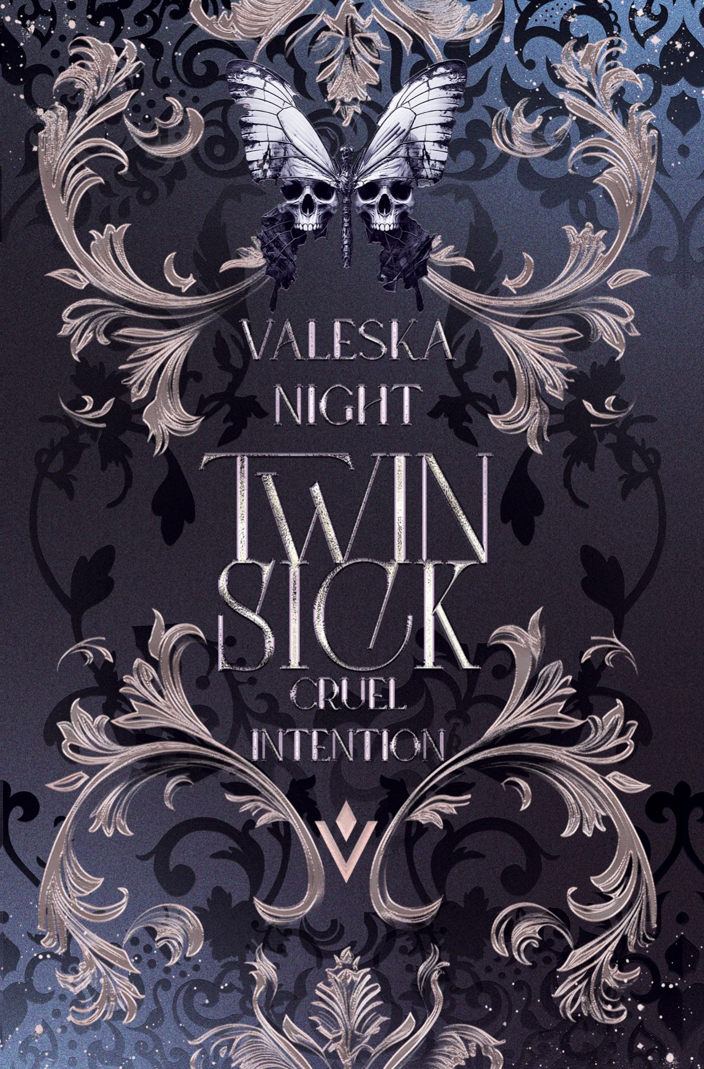 "Valeska Night. Twin Sick. Cruel Intention." Barockes Design mit Totenkopf-Schmetterling und floralen Ornamenten., Buch
