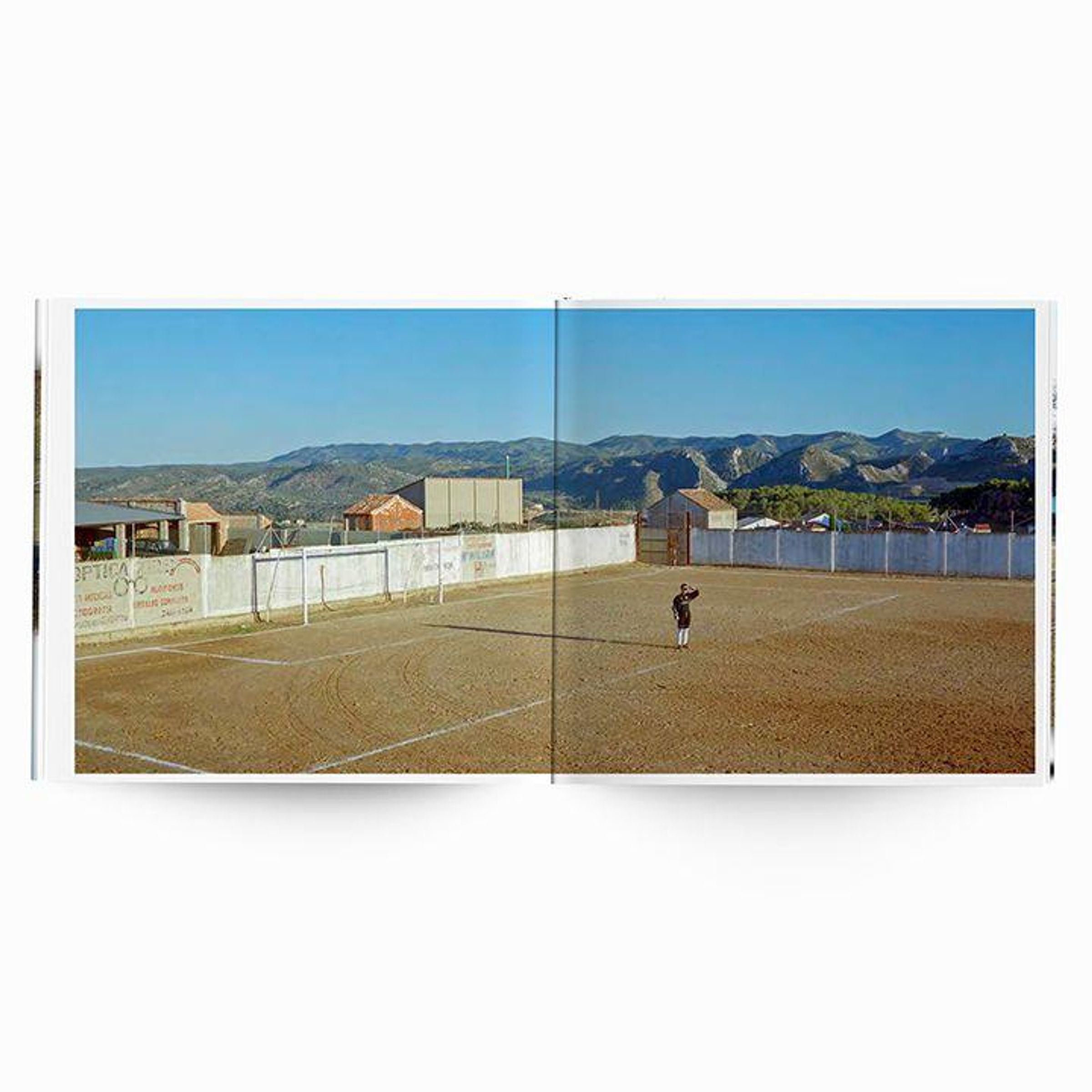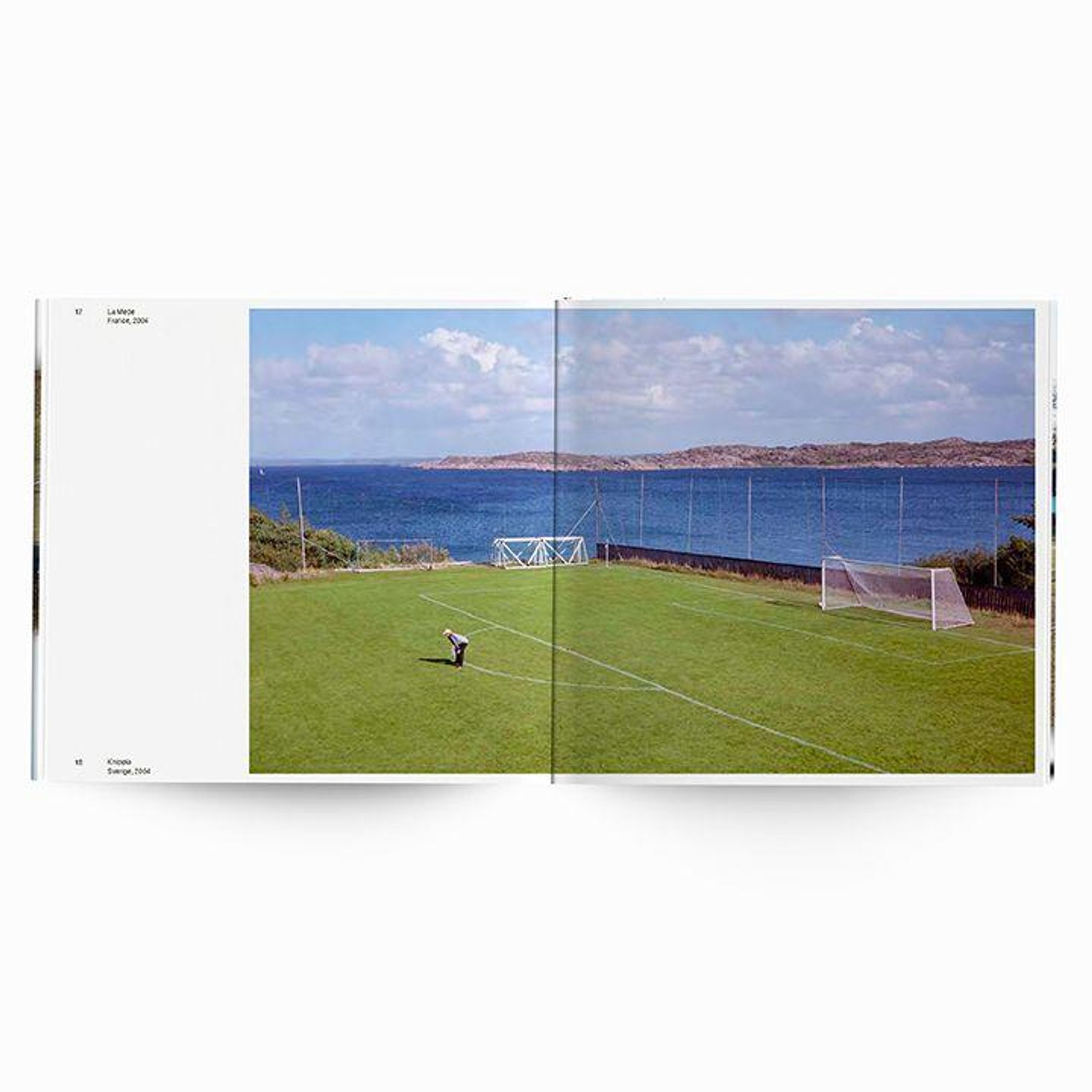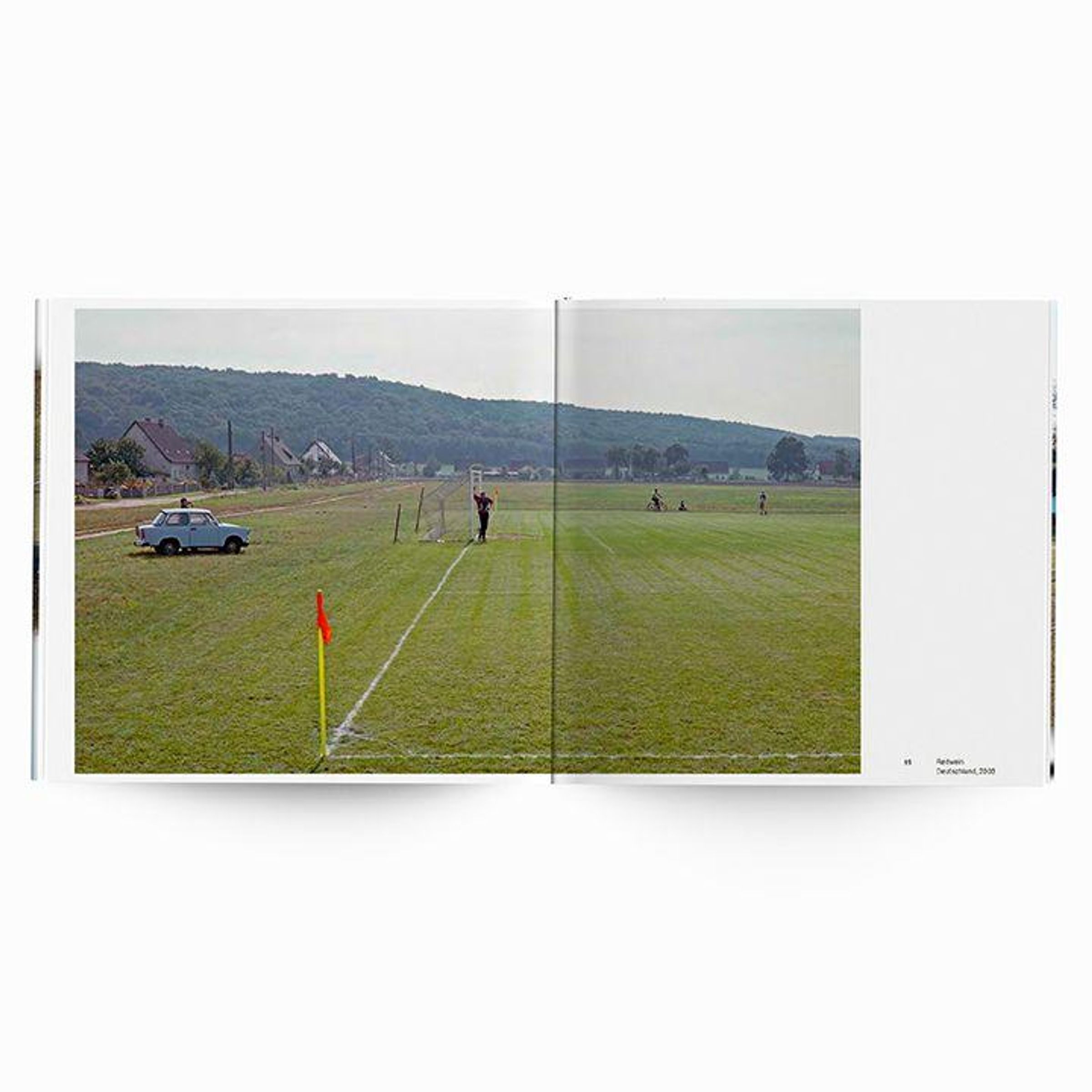 "Torhüter Hans van der Meer." Eine Person steht auf einem Fußballplatz vor einem Tor. Bäume und ein kleines Haus im Hintergrund., Buch