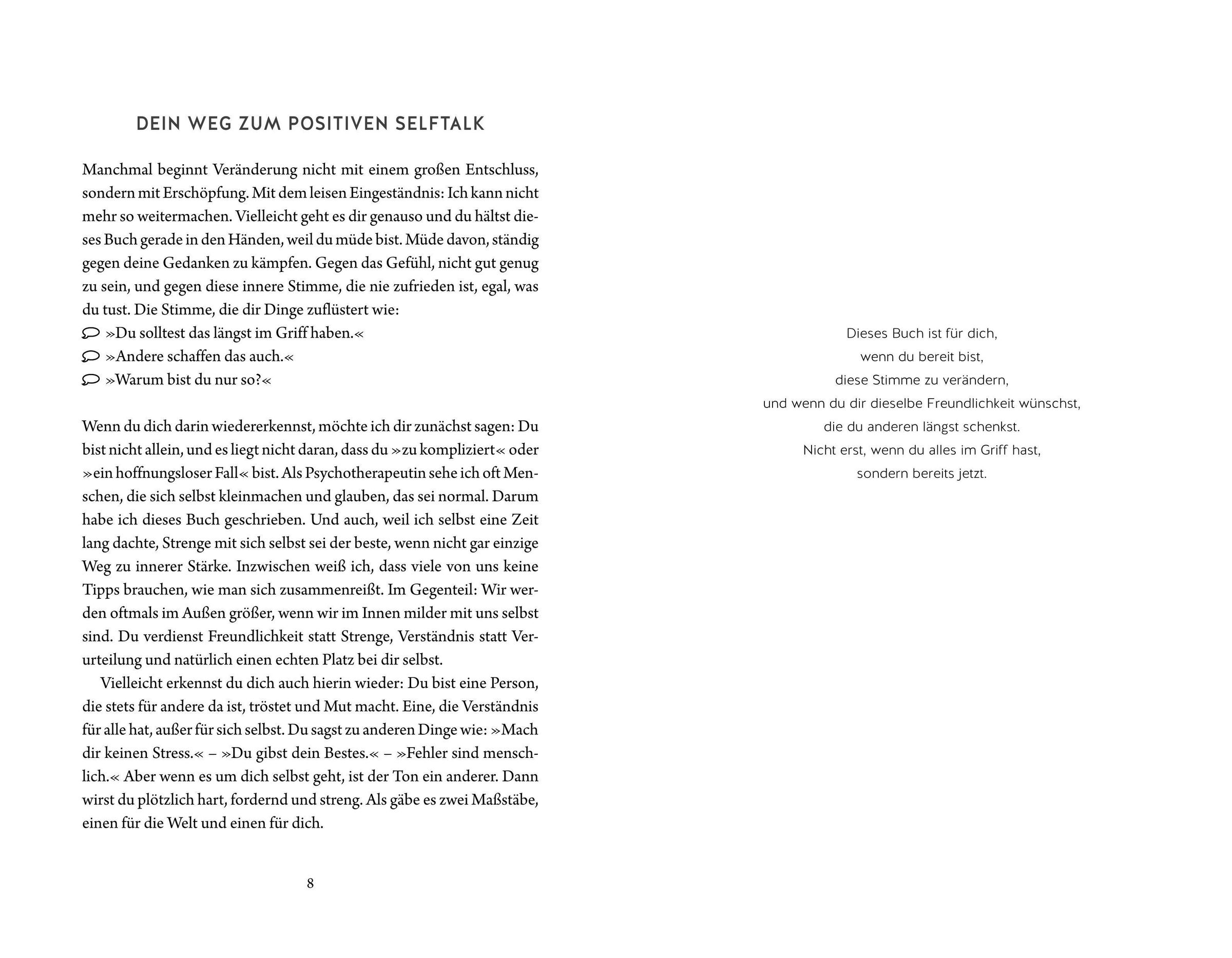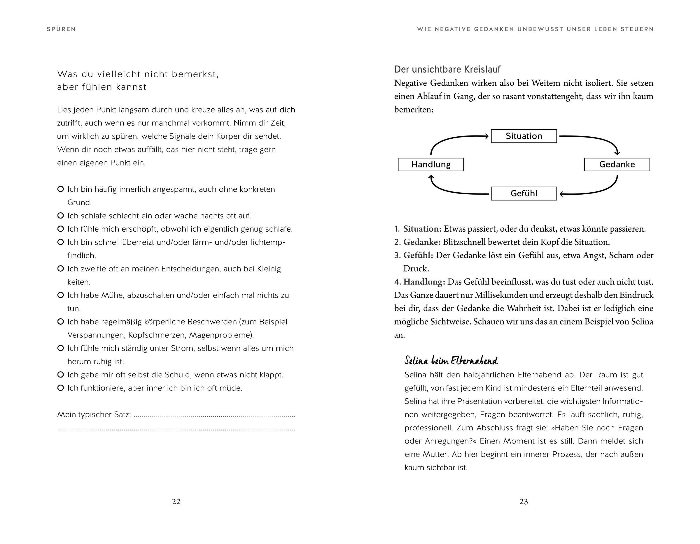 - Die bewährte S. E.L. F.-Talk-Methode: Entschärfe gezielt destruktive Sätze und lerne, sie positiv umzuformulieren