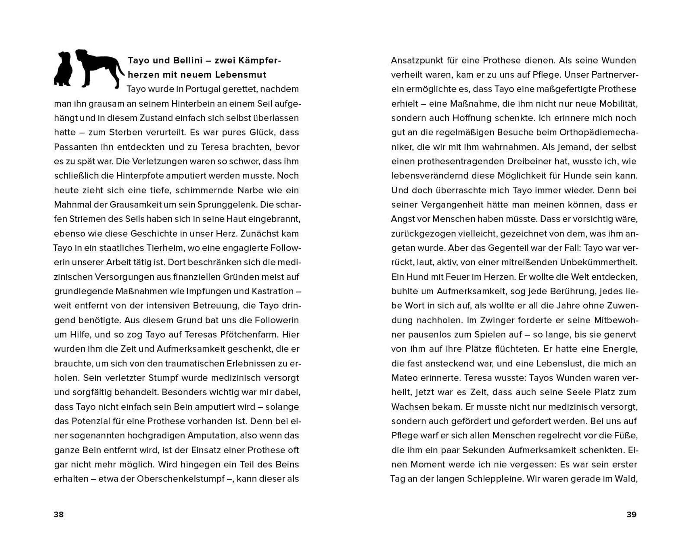 Heute sind Straßenhunde fester Bestandteil ihres Lebens geworden. Vanessa, Rafael und ihr Hunderudel Mojo, Rana und Mateo nehmen regelmäßig hilfsbedürftige Tiere aus Portugal auf, bis sie bereit für ein festes und endgültiges Zuhause sind. Eine herausfordernde und zugleich zutiefst erfüllende Aufgabe!