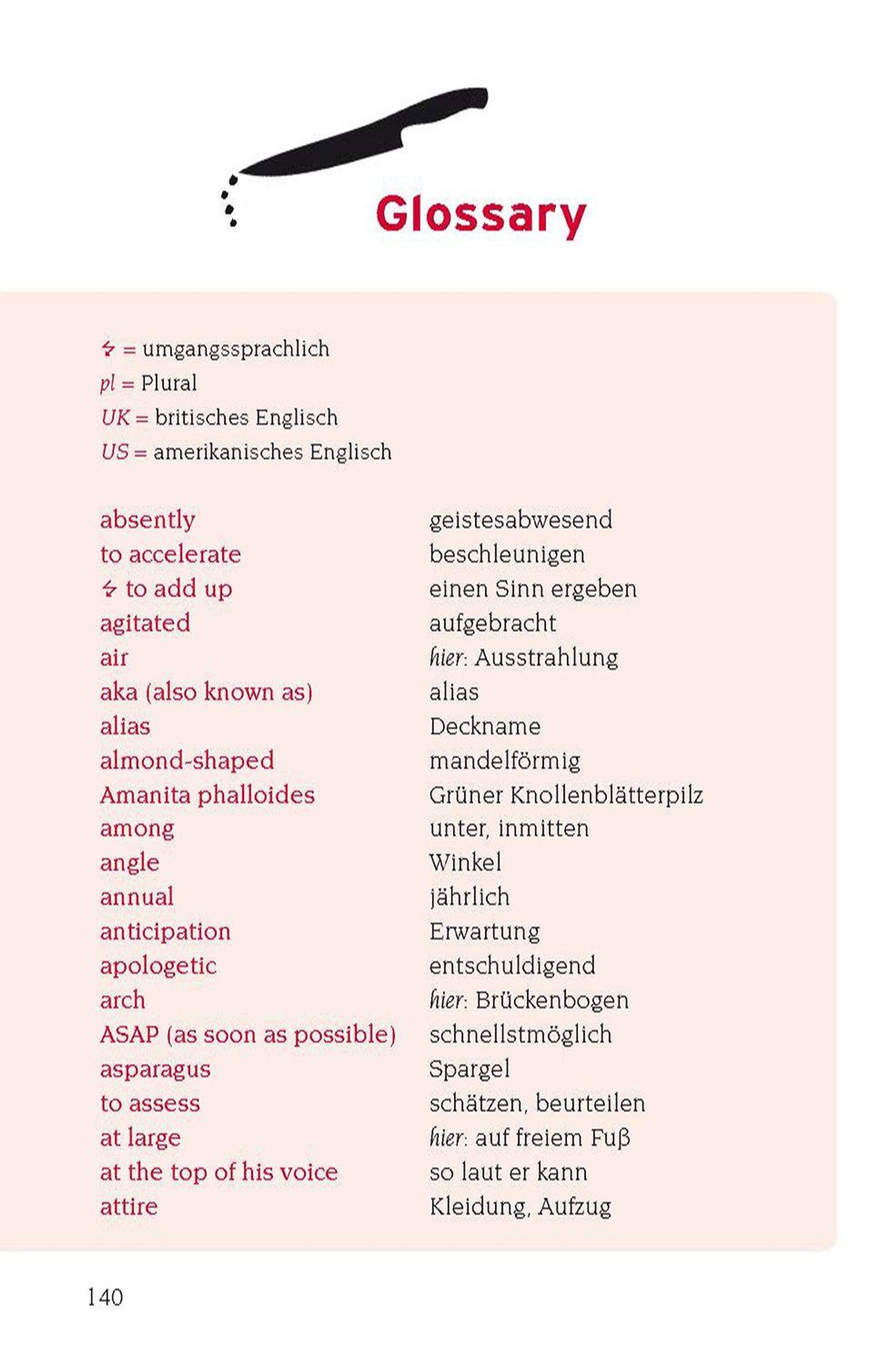 - Umfangreiches Glossar: Das alphabetische Glossar am Ende des Buches ermöglicht es, die Wörter aus allen Texten auch nachträglich nachzuschlagen.