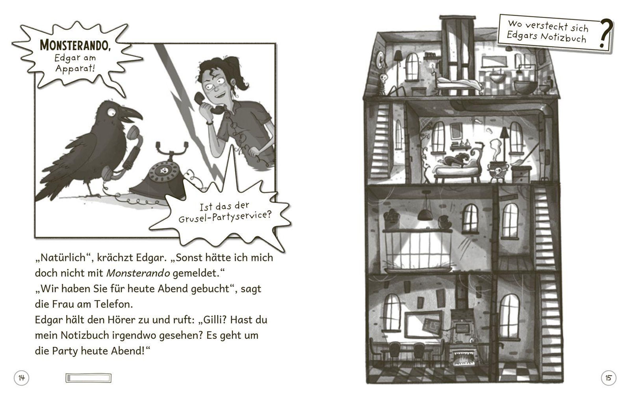Geist Jakob, Hexe Gilli, Monster Marla und Rabe Edgar starten sogleich ihre gruselige Rettungsmission. Mit Spukmobil, Hexenbesen und jeder Menge schauriger Spezialeffekte wollen sie die ultimative Gruselparty für Milo auf die Beine zu stellen. Doch schon das Einsammeln der Partygäste wird zum Nackenhaar sträubenden Abenteuer. Geist Jakob verirrt sich auf dem Friedhof, Monster Marla flüchtet vor einem kläffenden Chihuahua - und auch Hexe Gilli und Rabe Edgar haben mit biestigen Hürden zu kämpfen.