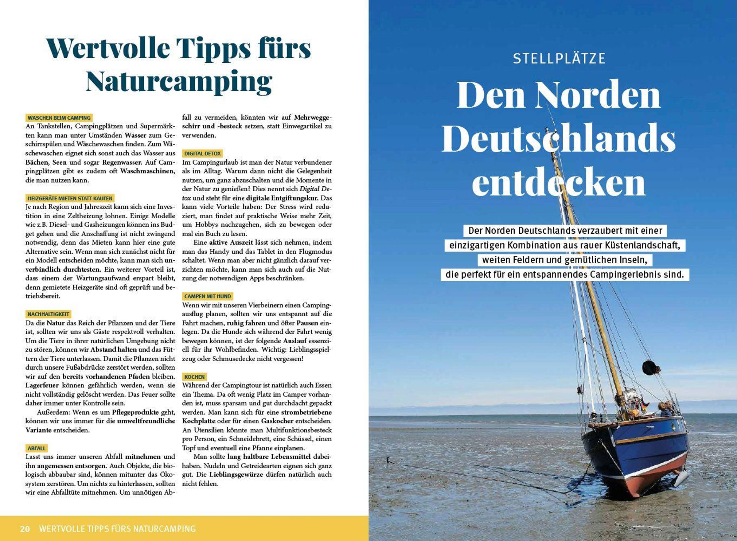 Praktische Camping-Tipps und Extras: Alles rund um Routenplanung, Camping-Must-haves, Reisen mit Hund, nachhaltiges Camping, Wintercamping, Kochen unterwegs sowie eine Sprachhilfe für Camper und eine passende Roadtrip-Playlist