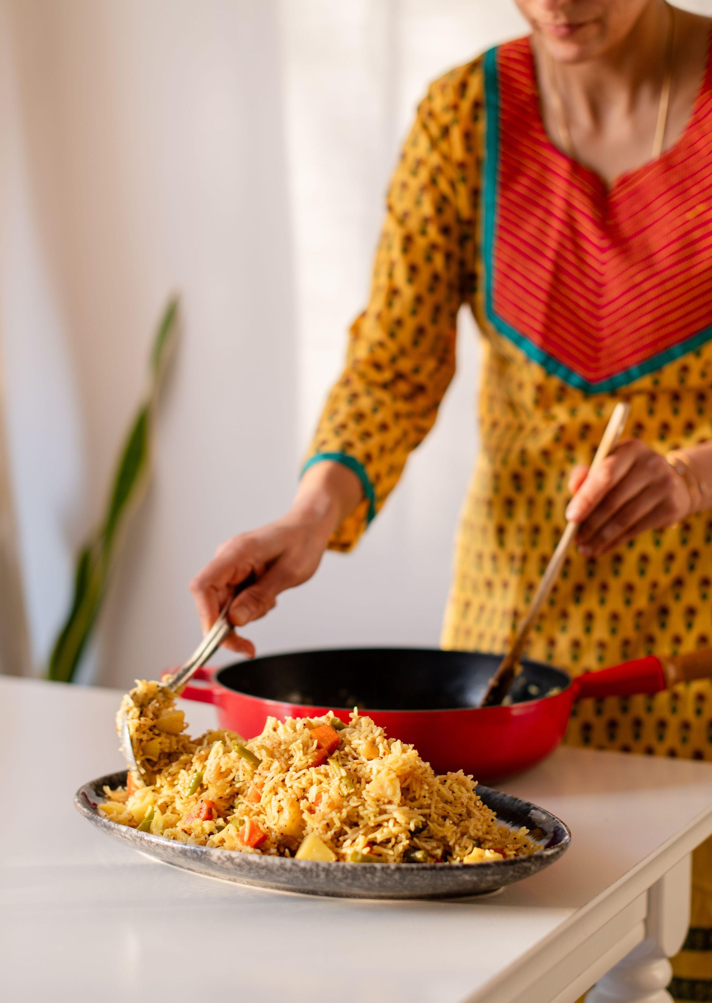 Als berufstätige Mutter weiß Varuna Singh, wie wertvoll schnelle, gelingsichere Rezepte sind. Aus dem engen Austausch mit ihrer großen YouTube-Community kennt sie genau die Gerichte, die im Alltag wirklich funktionieren und besonders begehrt sind. So entstand eine Auswahl von 60 Rezepten, die intensive Aromen, traditionelle Gewürze und den Wunsch nach nach Einfachheit perfekt verbindet - ein praktischer Zugang zur indischen Küche, der im Alltag zuverlässig funktioniert.