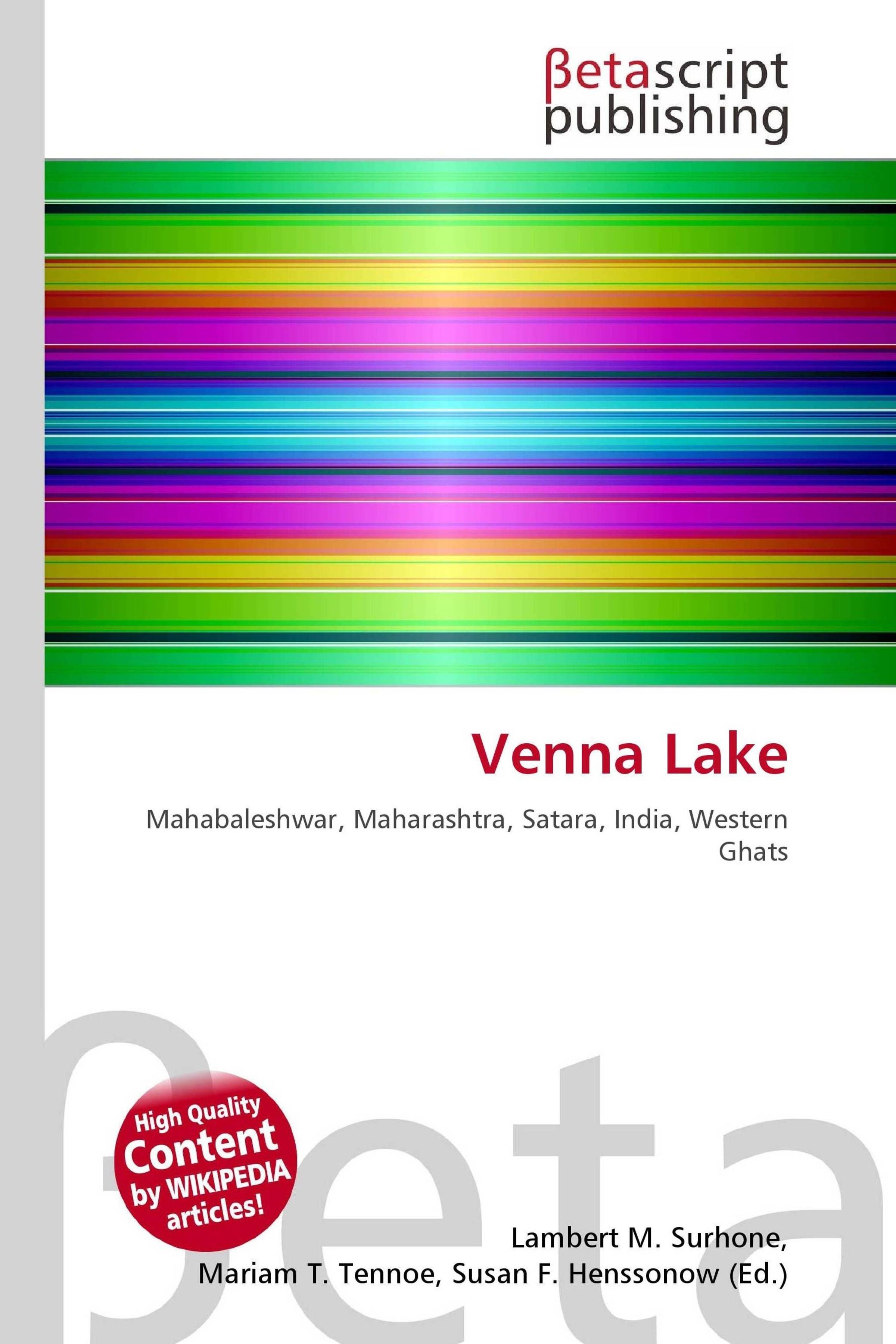 "Betascript Publishing" oben, "Venna Lake" fett gedruckt, darunter "Mahabaleshwar, Maharashtra, Satara, India, Western Ghats". Bunte Streifen., Buch