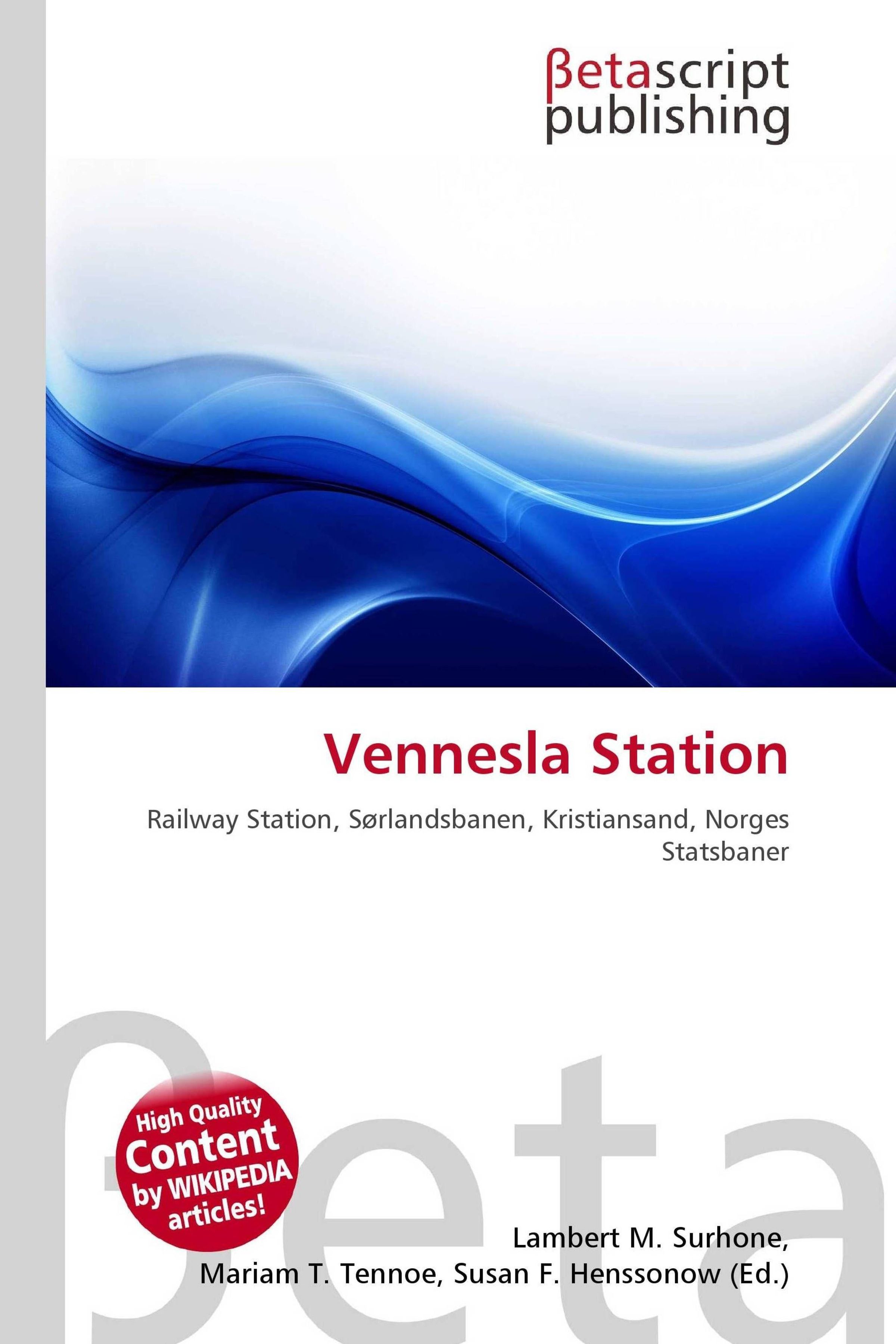"Vennesla Station" und Verleger "Betascript Publishing" oben. Abstrakte blaue Wellen darunter., Buch