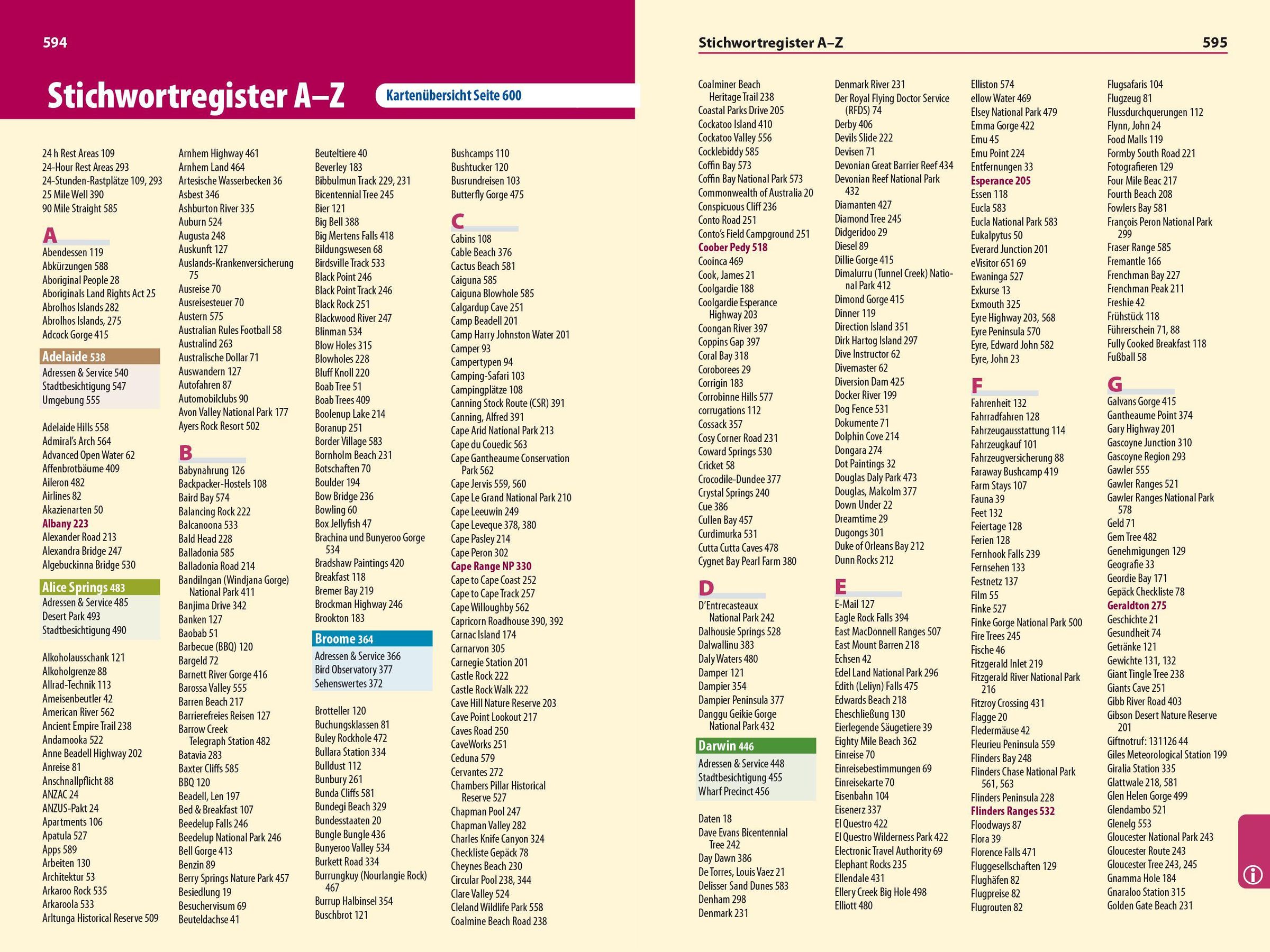 Stichwortregister A-Z , Griffmarken, Seiten- und Kartenverweise