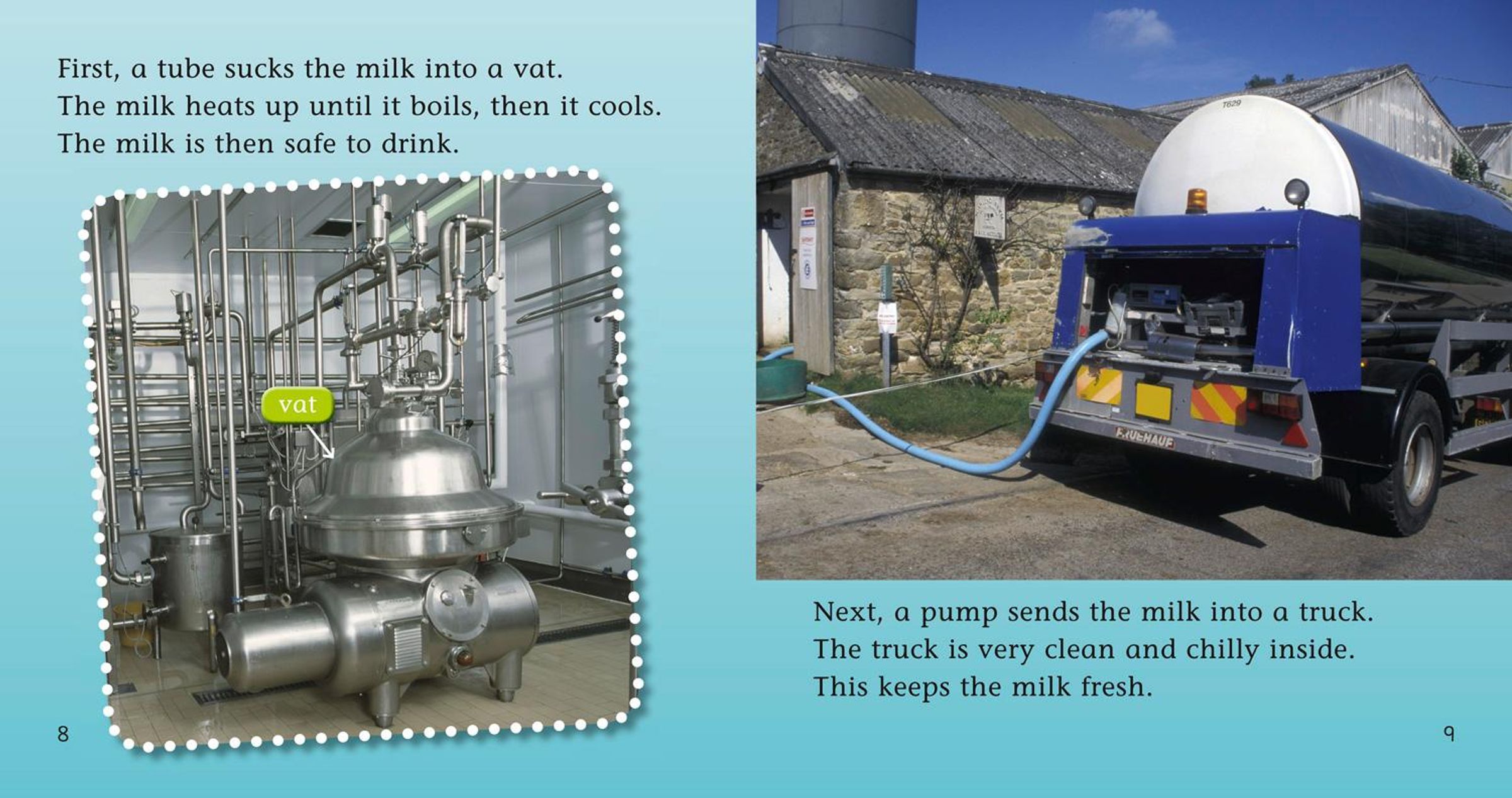 Ever wondered how milk gets from the cow in the field to your glass? Filled with photographs, this non-fiction report takes you through every step, from milking the cow to transporting the milk to the supermarket.