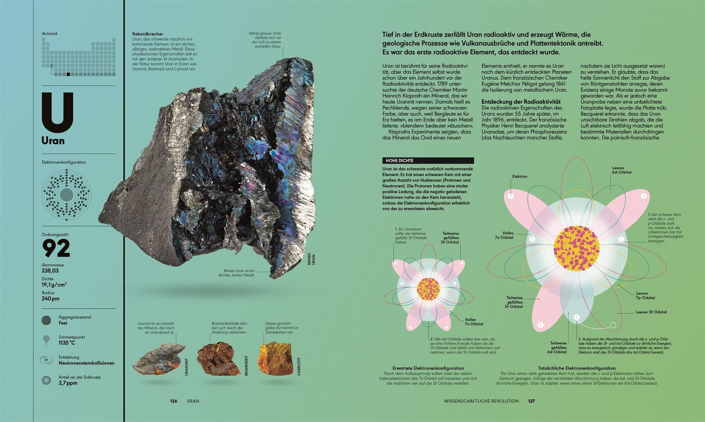 Dieses außergewöhnliche Buch stellt die 118 Elemente des Periodensystems in der Reihenfolge ihrer Entdeckung vor und erzählt damit gleichzeitig die spannende Geschichte der Chemie . Von Kupfer und Blei, die man bereits in der Urzeit kannte, bis zu instabilen Verbindungen, die nur im Teilchenbeschleuniger aufblitzen, wird jedes Element in einem ausführlichen Porträt vorgestellt. Warum ist das Element Gold so formbar? Was ist Radioaktivität und welche Eigenschaften machen Wasserstoff so explosiv? Klare Infografiken und Illustrationen enthüllen die atomare Struktur jedes Elements und seine damit verbundene Charakteristik. Interessante Fakten zur Entdeckungsgeschichte und den vielfältigen Anwendungen machen dieses Buch zu einem wertvollen Nachschlagewerk für Schule, Studium und die ganze Familie.
