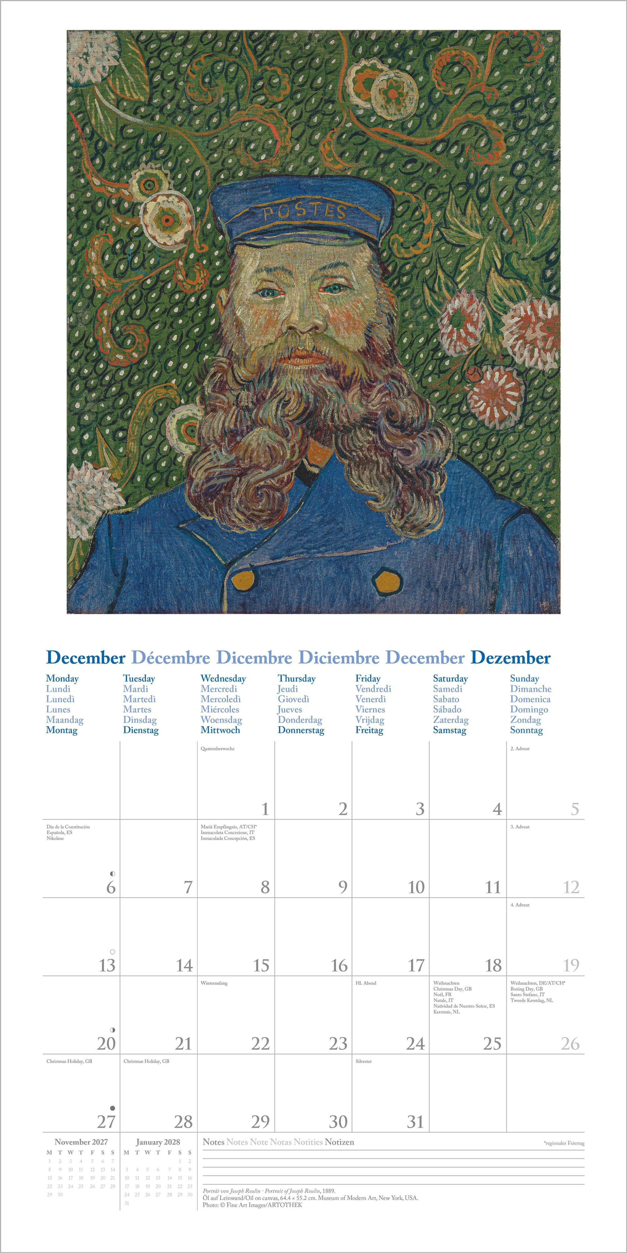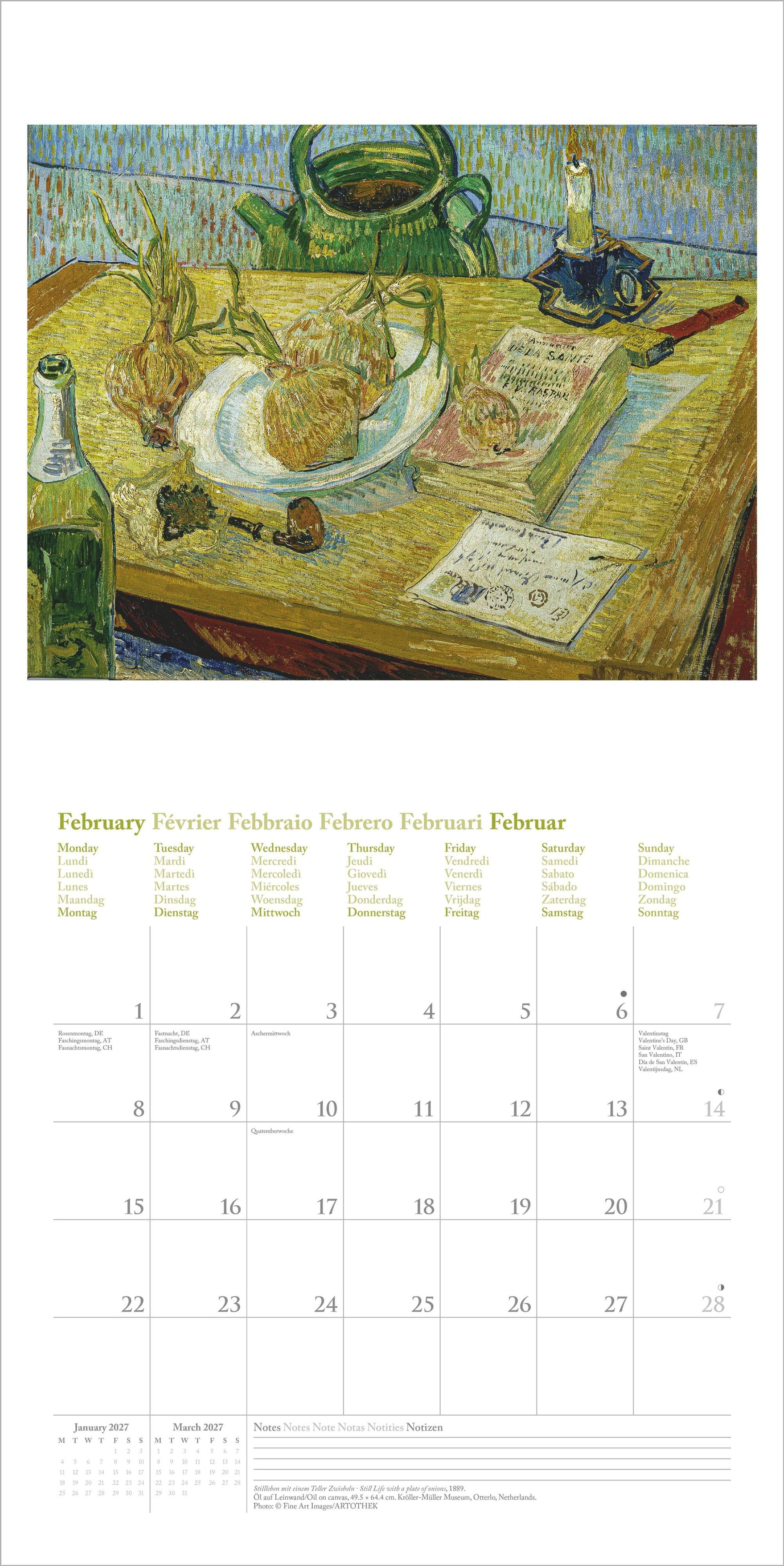Dieser hochwertige Kunstkalender bringt die einzigartigen Werke Van Goghs in Ihr Zuhause und macht das Jahr 2027 zu einem inspirierten Kunst-Erlebnis.