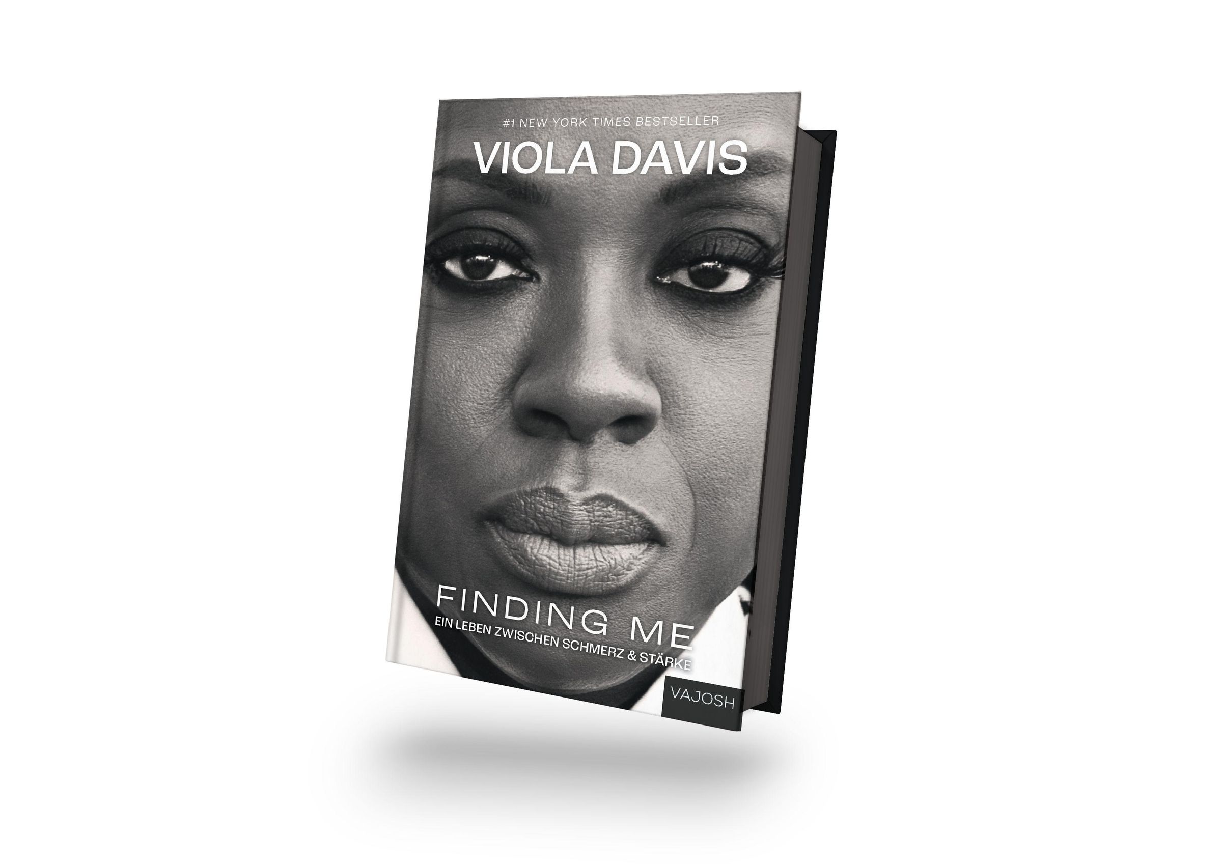 VIOLA DAVIS, "Finding Me: Ein Leben zwischen Schmerz & Stärke". Schwarz-weiß Porträt einer Frau auf einem Buchcover., Buch