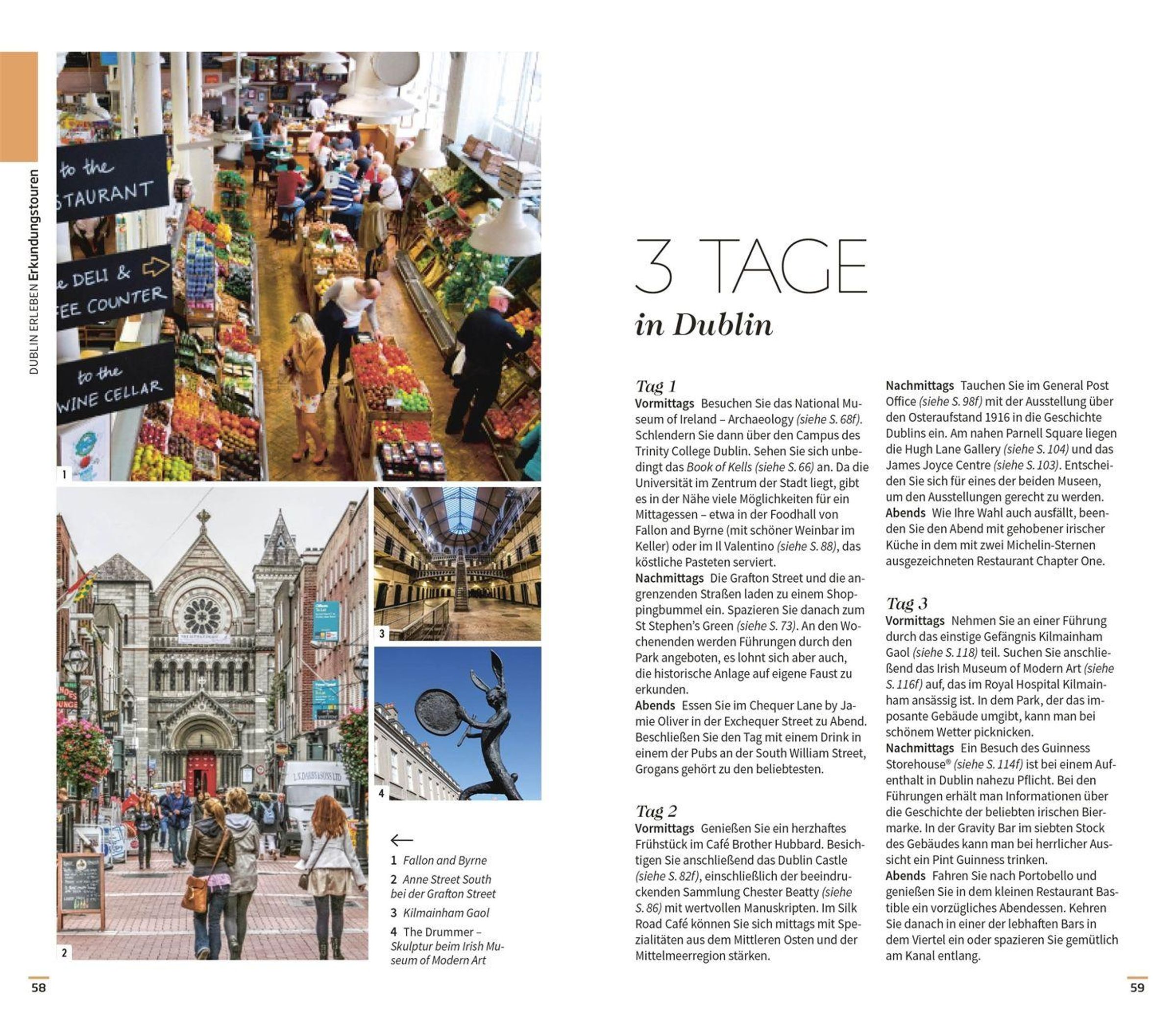 Die einzigartigen 3-D-Illustrationen der Vis-à-Vis Bände bieten Ihnen ganz neue Einblicke in berühmte Gebäude und Sehenswürdigkeiten, darunter das Trinity College in Dublin mit seiner jahrhundertealten Bibliothek oder das trutzige Bunratty Castle aus dem 15. Jahrhundert. Mit den Tourenvorschlägen und handgezeichneten Spaziergängen entdecken Sie atemberaubende Landschaften auf der Halbinsel Dingle oder Dublins historisches Zentrum auf ganz besondere Art und Weise. Bildgewaltige Themenseiten rücken charakteristische Besonderheiten in den Fokus, wie die einzigartige Pub-Kultur, die lebendige Musik-Szene oder die bewegte irische Geschichte.