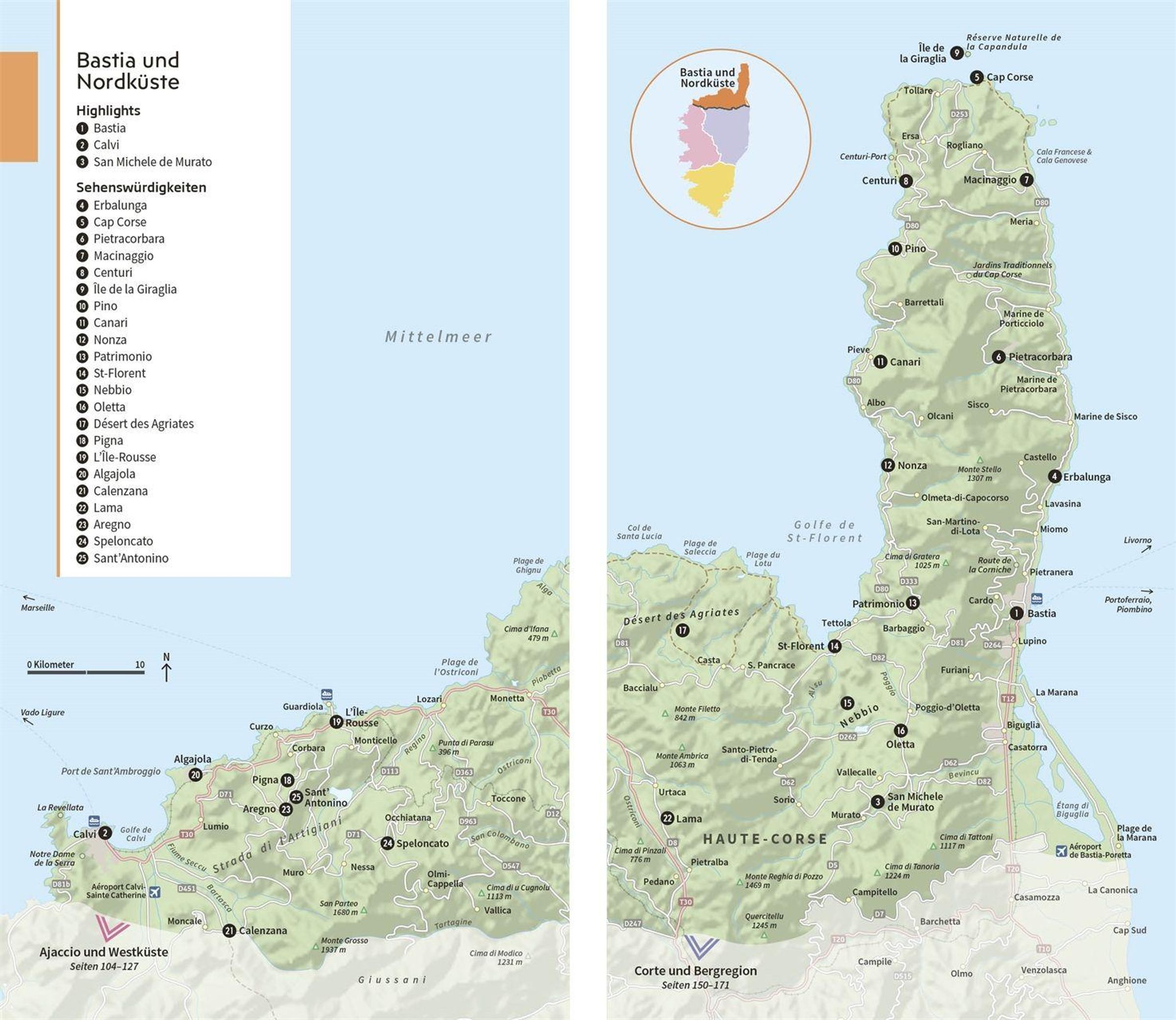 Die einzigartigen 3-D-Illustrationen der Vis-à-Vis Bände bieten Ihnen ganz neue Einblicke in berühmte Gebäude und Sehenswürdigkeiten, darunter Highlights wie die mittelalterlichen Zitadellen von Calvi und Corte. Mit den Tourenvorschlägen, Wanderungen und Autotouren entdecken Sie Korsikas faszinierende Landschaften und Orte auf ganz besondere Art und Weise. Bildgewaltige Themenseiten rücken charakteristische Besonderheiten in den Fokus, wie das Kunsthandwerk, die korsische Küche oder Outdoor-Aktivitäten auf dem Land und dem Wasser.