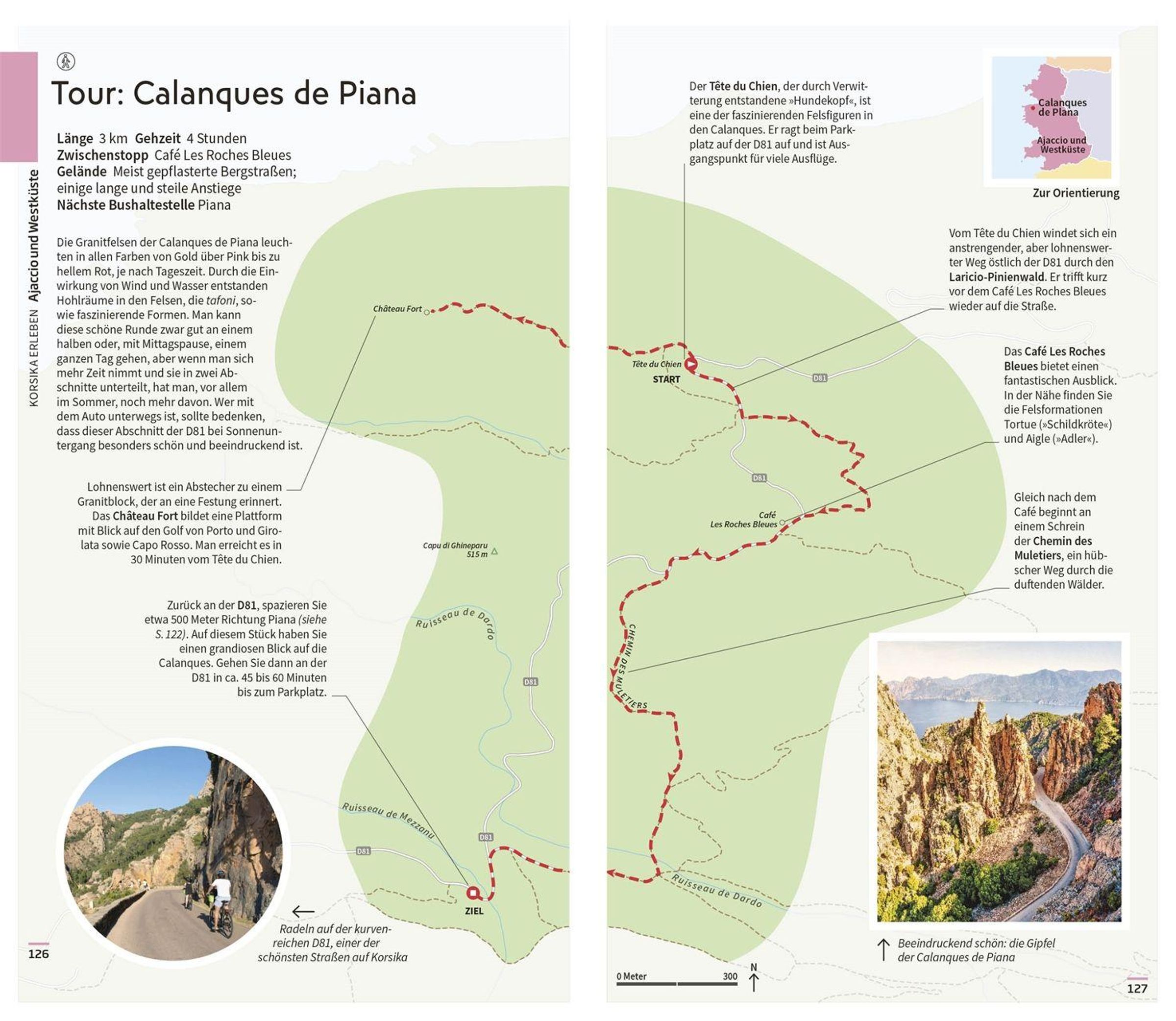 In den Calanques de Piana die vom Meer erodierten Felsformationen bewundern, wandernd die Landschaft erkunden oder auf bunten Bauernmärkten lokale Spezialitäten verkosten: Lassen Sie sich vom Vis-à-Vis Reiseführer Korsika zu den wichtigsten Sehenswürdigkeiten und beeindruckendsten Orten der Insel führen. Mit fundiertem Expertenwissen, inspirierenden Fotos und detaillierten Karten stellt Ihnen der übersichtliche Reiseführer die schönsten Gegenden und Städte Korsikas mit allen Attraktionen vor - von Bastia und der Nordküste über die West- und Südküste bis in die zentrale Bergregion. Ob für zwei Tage in Ajaccio, fünf Tage im Süden der Insel oder eine 2-wöchige Abenteuertour auf dem spektakulären Weitwanderweg GR20 - hier finden Sie passende Reiserouten und Empfehlungen für Aktivitäten, Restaurants und Hotels, um das Beste aus Ihrem Korsika-Urlaub herauszuholen!