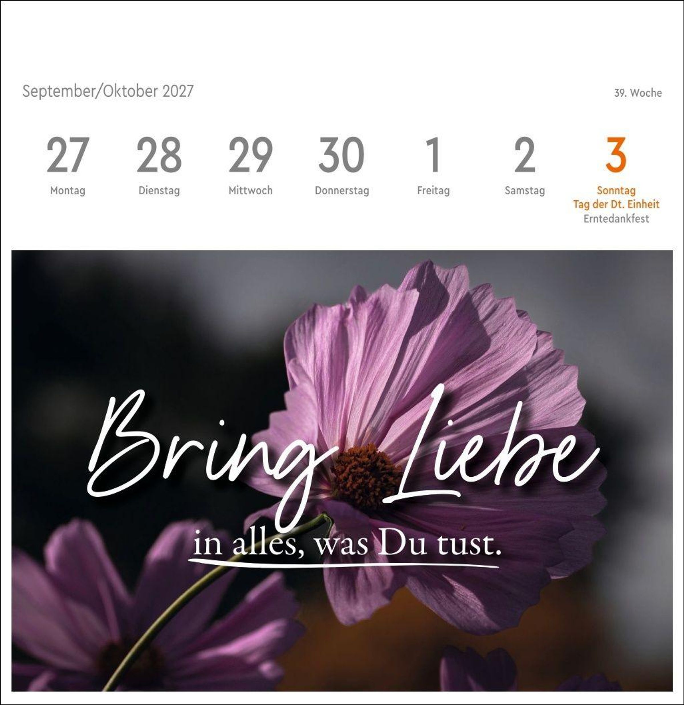 Typo-Art meets Naturfotografie: Dekorativer Kalender zum Aufstellen im Format 16, 5 x 17, 7 cm