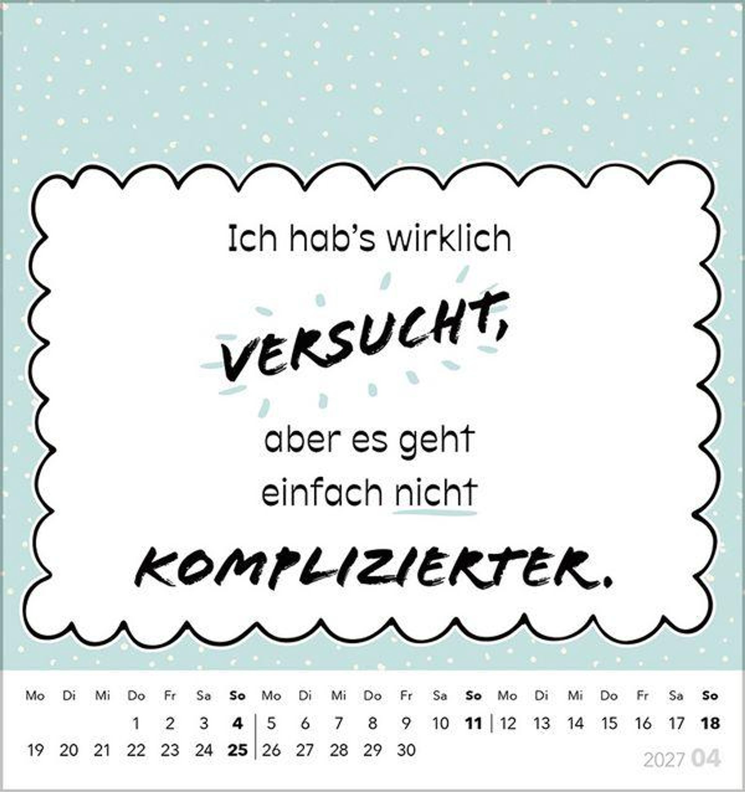 - Aufstellbarer Postkartenkalender mit lustigen Sprüchen. Tisch- und Wandkalender mit abtrennbaren Karten.