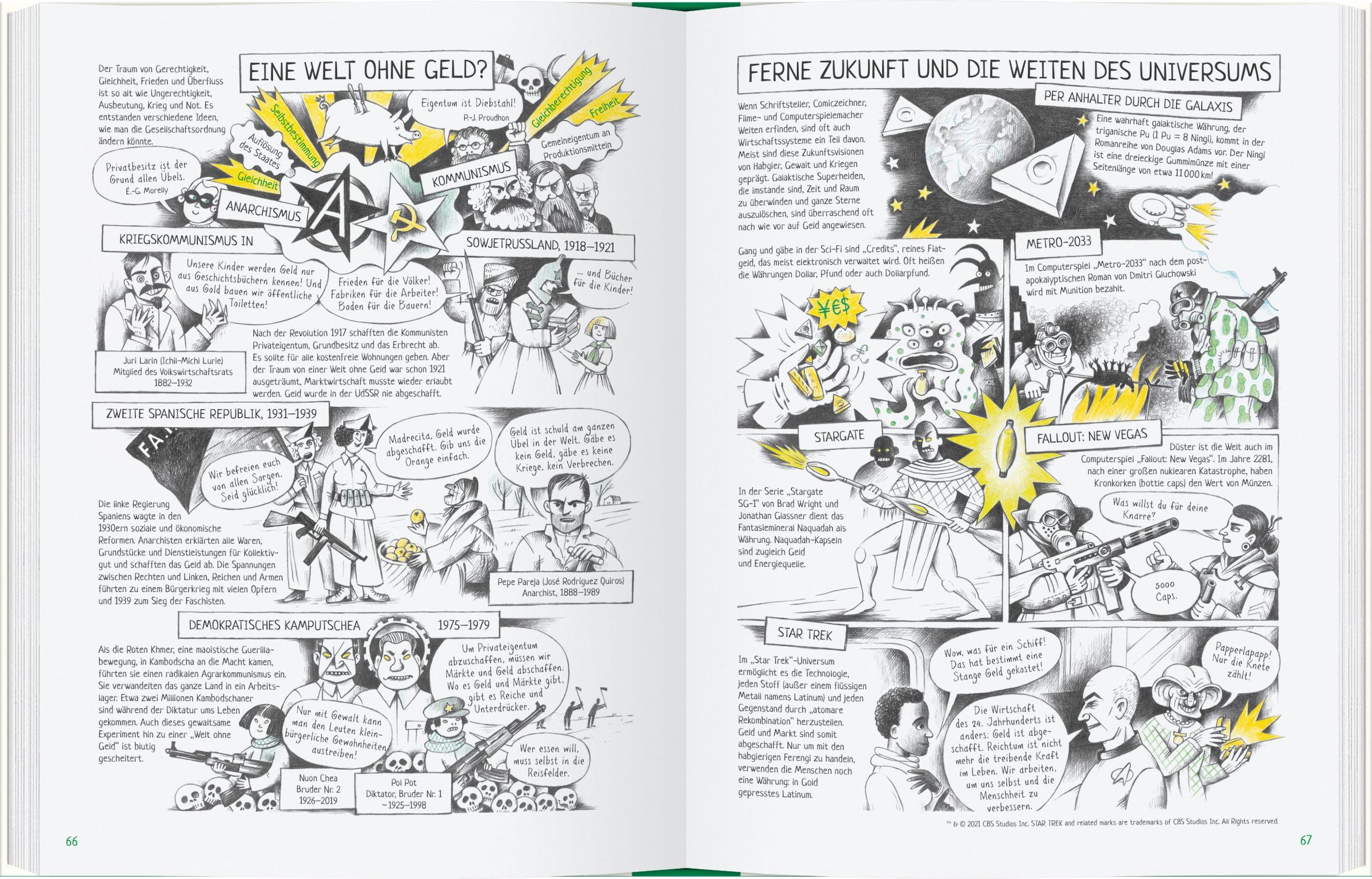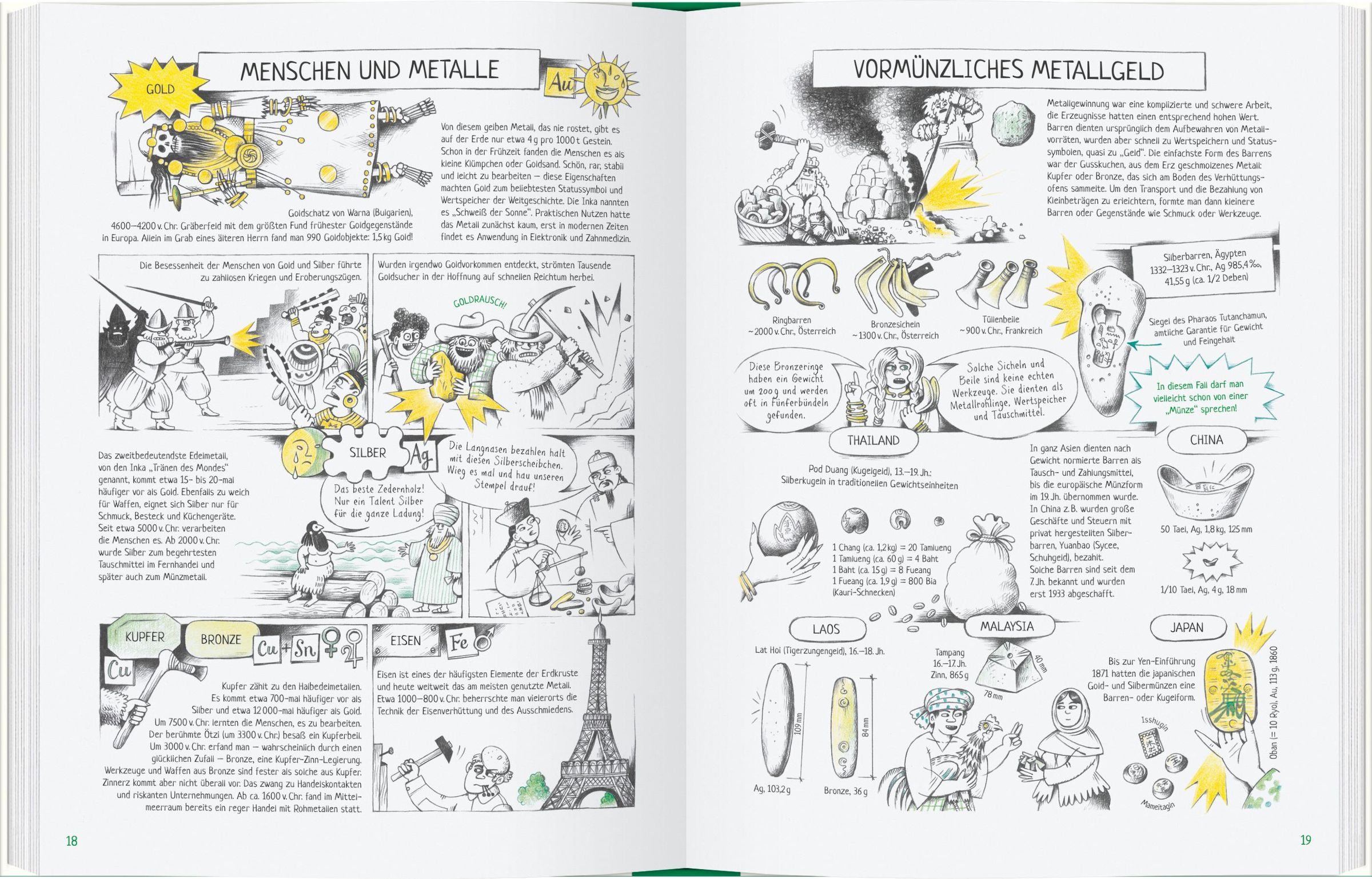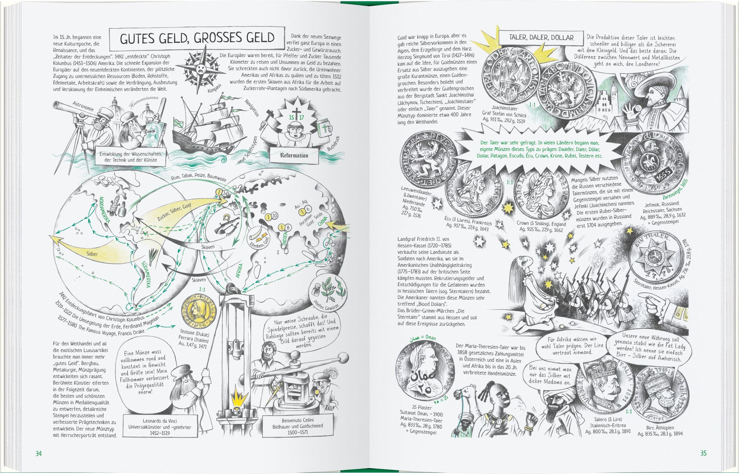 Euro, Dollar, Yen, Franken, Schilling, Pound - in aller Welt gibt es Geld. Doch was ist 'Geld' eigentlich? Münzen, Scheine, Guthaben auf der Bank? Kreditkarten und Kryptowährung? Wer hat all das wann und wo erfunden? Regiert Geld wirklich die Welt, wie das Sprichwort sagt? Und wer bestimmt dafür die Regeln? Wie funktionierte Handel, bevor es Geld gab? Warum ist Geld eigentlich so ungerecht verteilt? Und wäre eine Welt ohne Geld möglich? Höchste Zeit, mit diesen ebenso unterhaltsamen wie informativen Bildtableaus des Künstlers Vitali Konstantinov auf all das eine Antwort zu finden und zu einem echten Experten in Sachen Geld zu werden!
