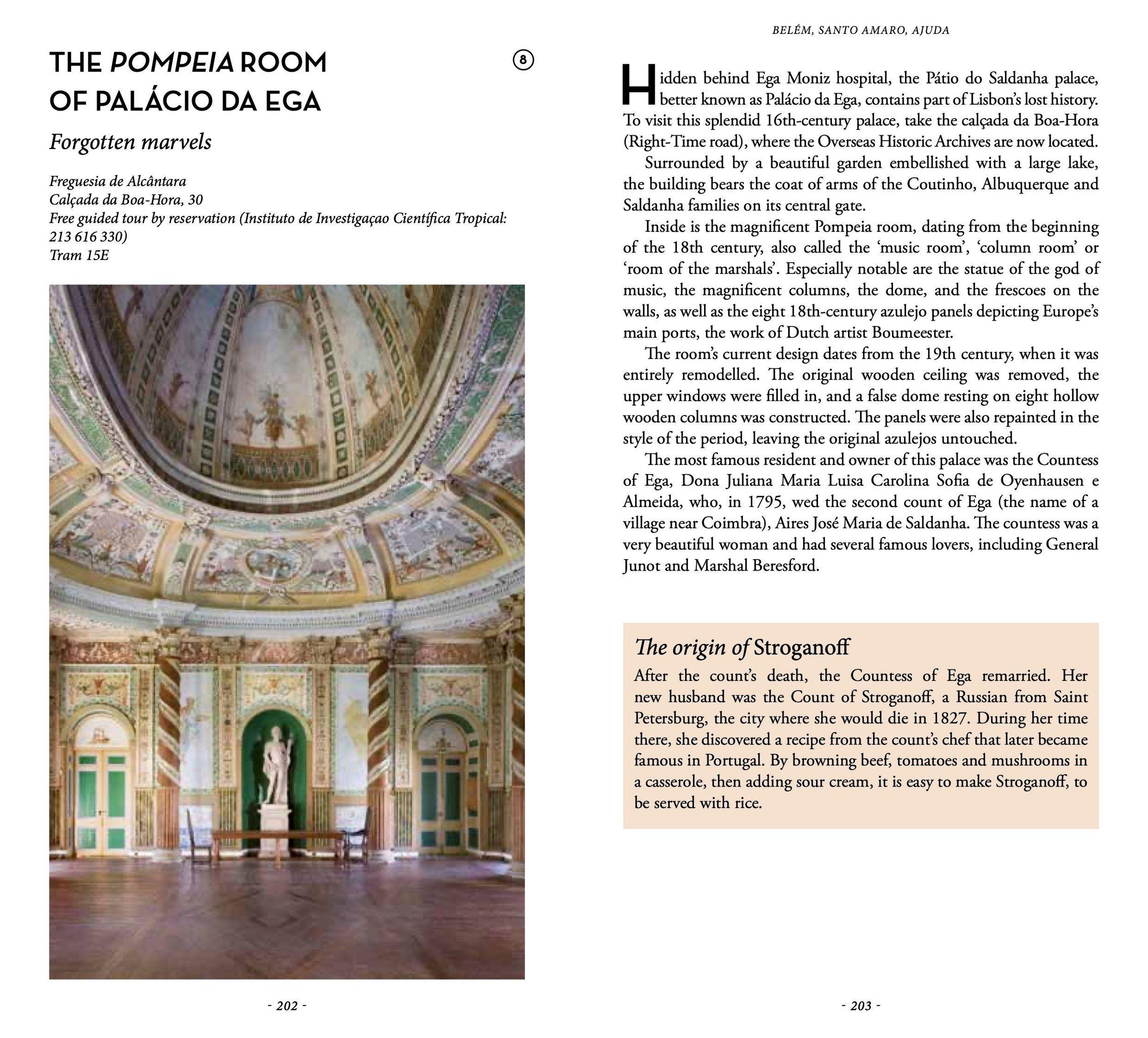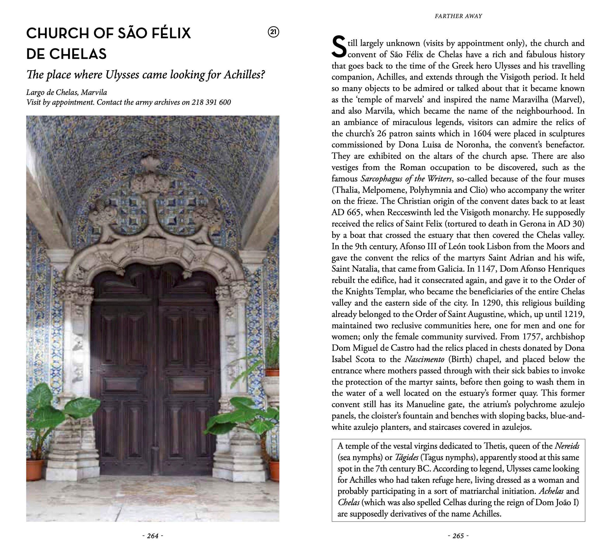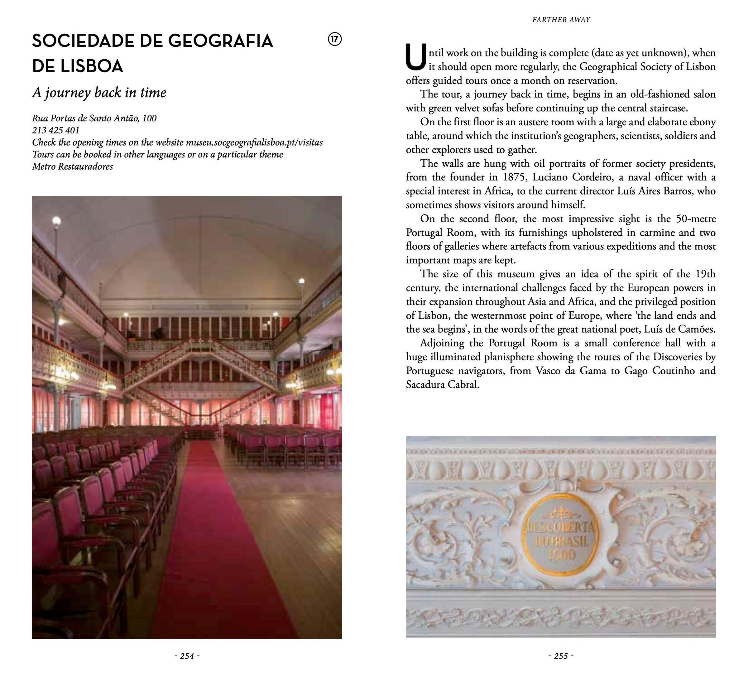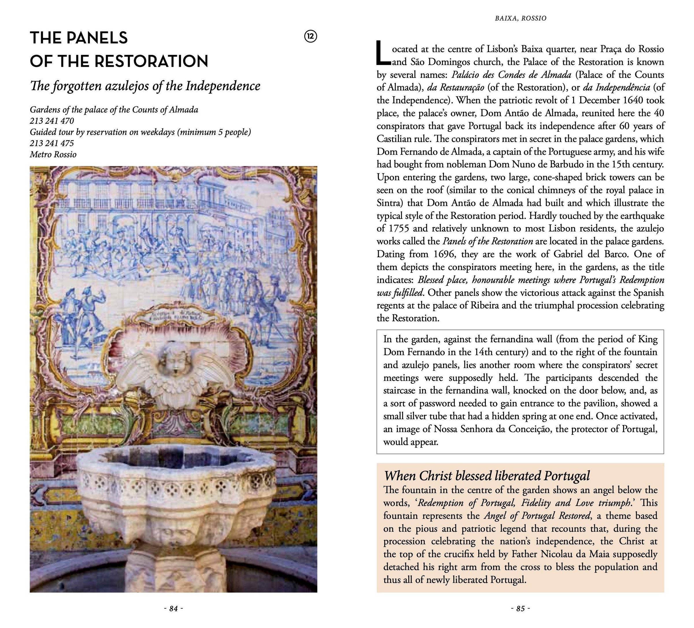 The city's most beautiful hidden azulejos, the head of a serial killer from Lisbon preserved in formaldehyde, the Kabbalistic on the south portal of the Hieronymites monastery, or the theory of the Fifth Portuguese Empire, the exceptional panoptic architecture of a former hospital, a tropical botanical garden that contains the remains of the Portuguese World exhibition, the impressive wax masks of the Museum of Dermatology, a secret passage at the Avenida Palace Hotel, the mysterious underground abbey of Palácio Foz, the reason why the Portugal's coat of arms is inclined at 17 degrees on the façade of Rossio station..