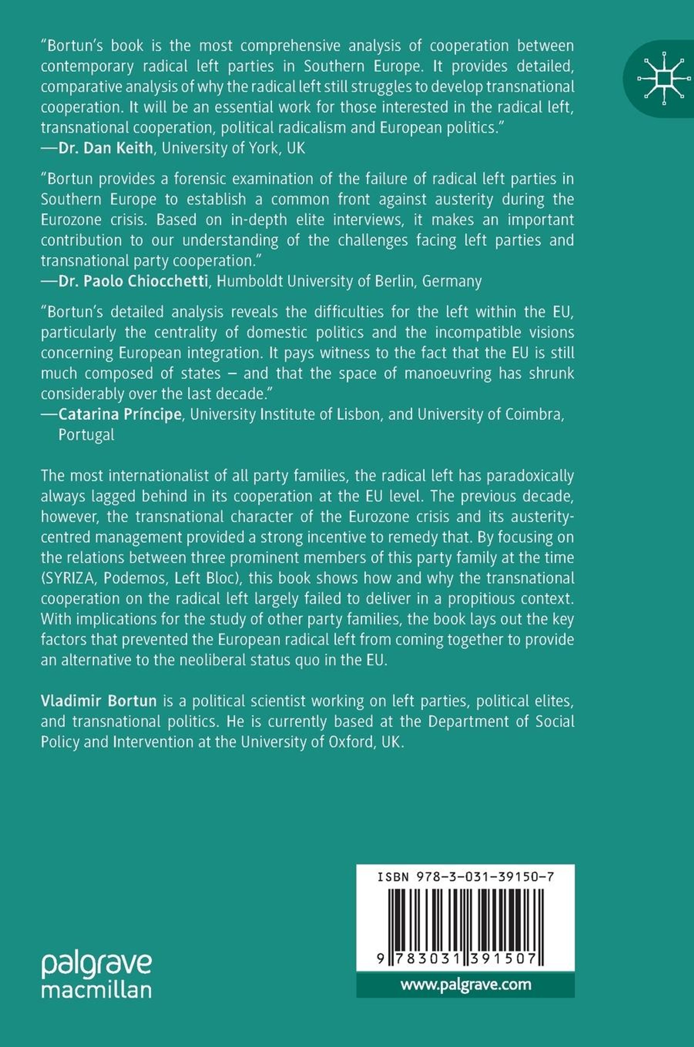 The most internationalist of all party families, the radical left has paradoxically always lagged behind in its cooperation at the EU level. The previous decade, however, the transnational character of the Eurozone crisis and its austerity-centred management provided a strong incentive to remedy that. By focusing on the relations between three prominent members of this party family at the time (SYRIZA, Podemos, Left Bloc), this book shows how and why the transnational cooperation on the radical left largely failed to deliver in a propitious context. With implications for the study of other party families, the book lays out the key factors that prevented the European radical left from coming together to provide an alternative to the neoliberal status quo in the EU.