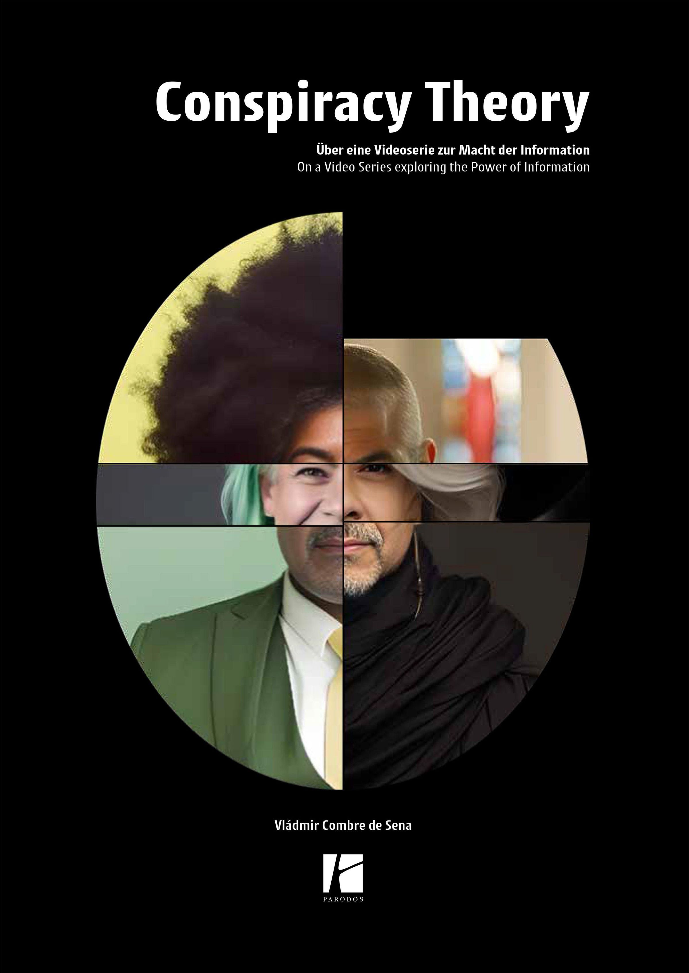 "Conspiracy Theory", Infos zur Macht der Information. Viergesichtskollage vor schwarzem Hintergrund., Buch