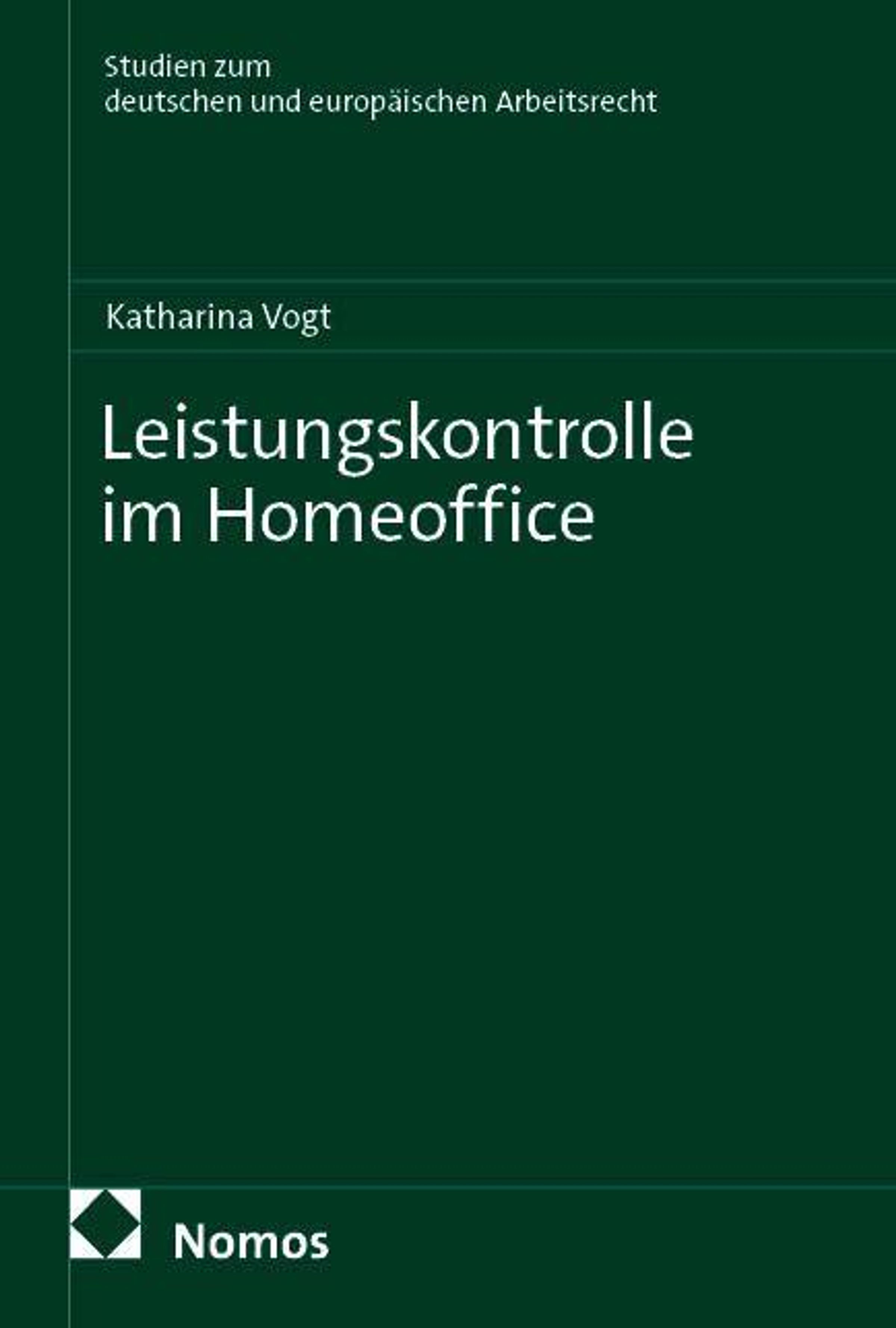 „Leistungskontrolle im Homeoffice“ von Katharina Vogt, grüner Hintergrund, Nomos-Logo unten links., Buch