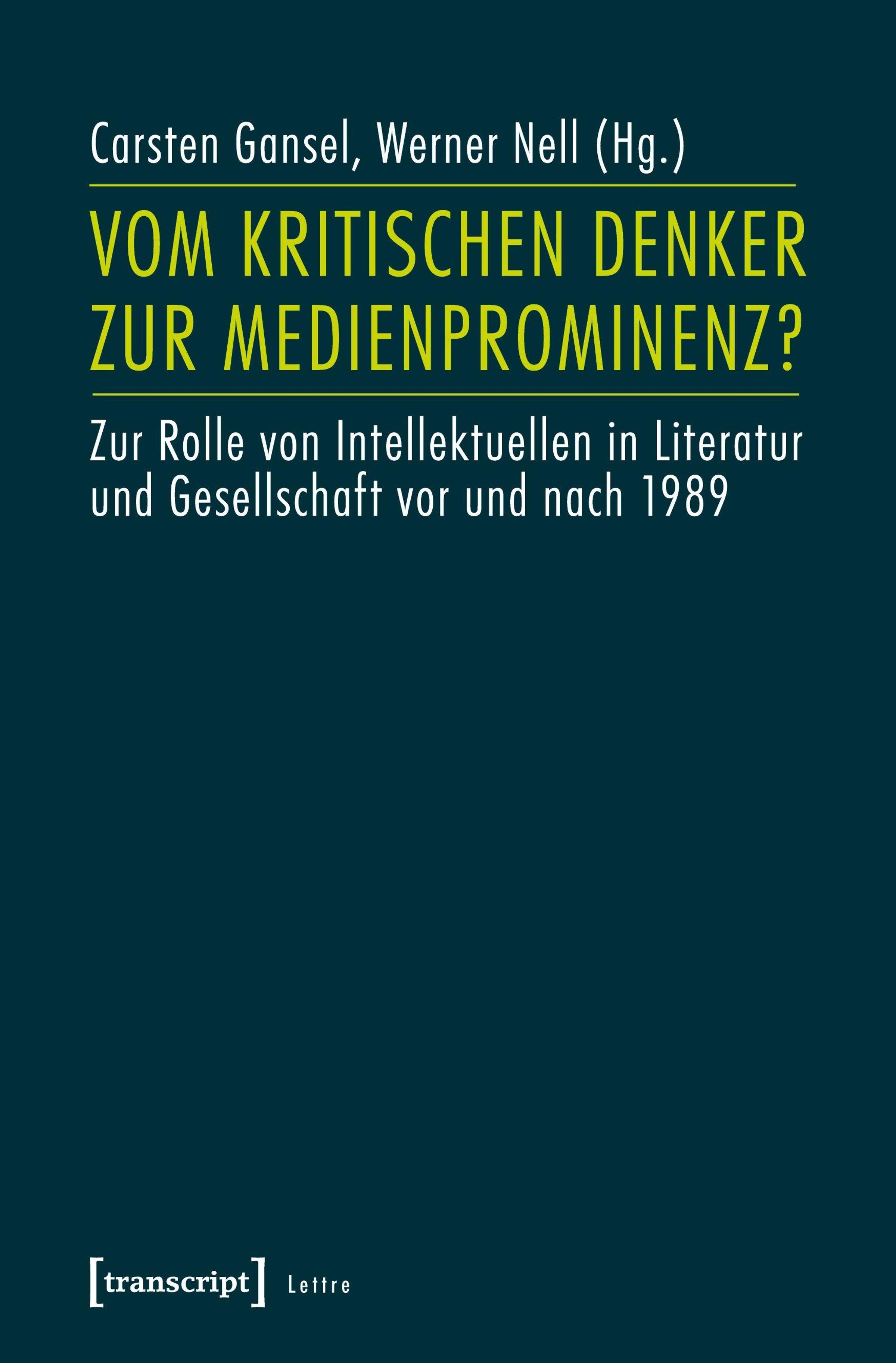 1989 / 1990 standen Schriftsteller, Künstler und Intellektuelle im Zentrum der Aufmerksamkeit: als Kommentatoren und Beobachter, aber auch als Akteure eines geschichtlichen Prozesses. Die anstehende Neuordnung der Gesellschaften, Verfassungsversammlungen, Runde Tische und Evaluationskommissionen wie auch die Veränderungen im Kulturbereich boten hinreichend Platz für intellektuelle Debatten, forderten aber zugleich eine Anpassung an die veränderten medialen Bedingungen. Vor dem Hintergrund einiger Fallbeispiele klassischen intellektuellen Handelns, die von Christopf Kaufmann aus der Goethezeit über die deutsche Literatur nach 1945 mit Günter Eich, Walter Boehlich, Rudolf Walter Leonhardt, Alexander Kluge, Christa Wolf oder Heiner Müller bis zu Dietmar Dath in der Gegenwartsliteratur reichen, präsentieren die Beiträge des Bandes Porträts und Entwicklungslinien zwischen intellektueller Praxis und den Möglichkeiten einer Inszenierung als Medienprominenz vor und nach 1989 / 90.
