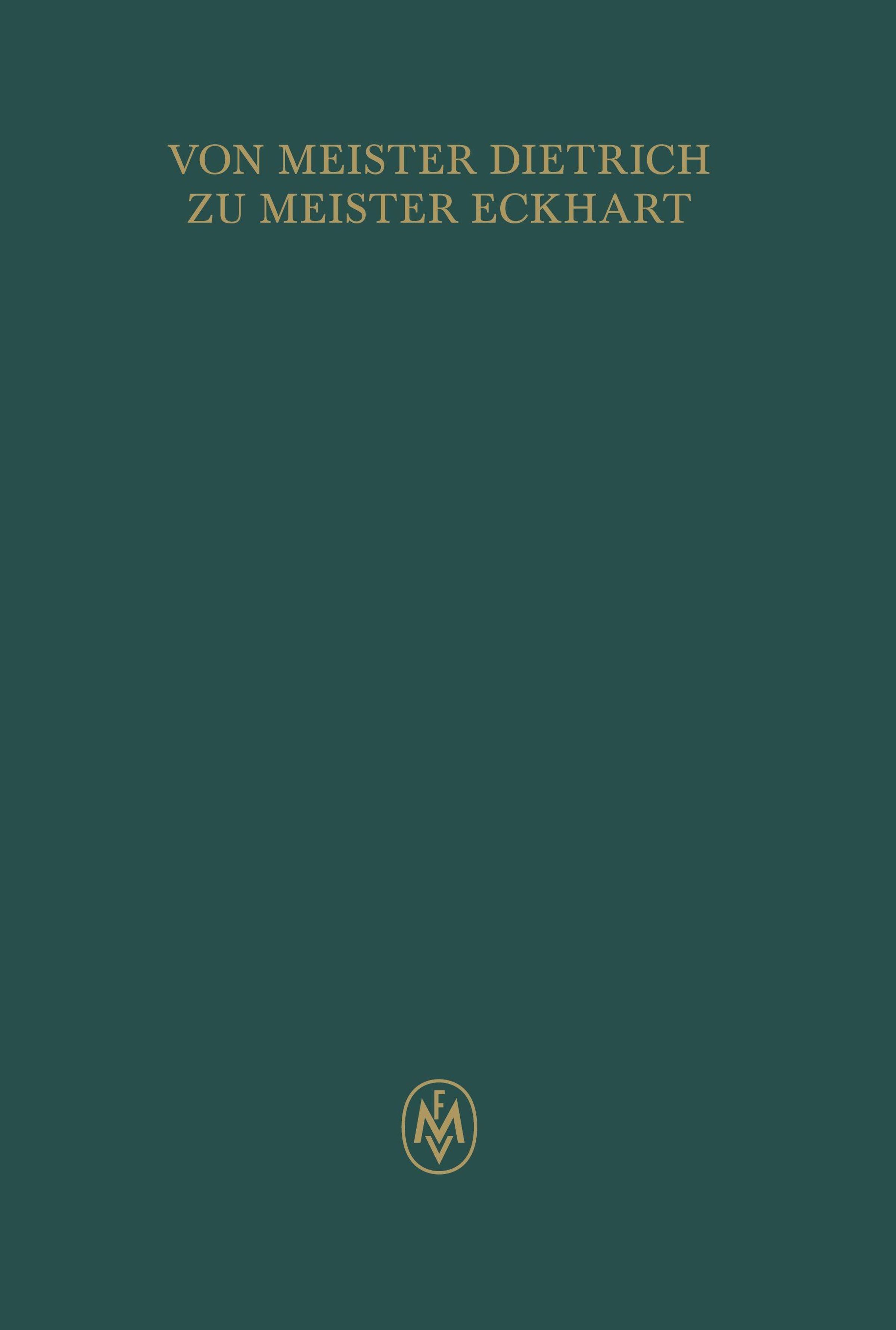 Text: "VON MEISTER DIETRICH ZU MEISTER ECKHART". Unten ein goldenes Logo mit den Buchstaben "FM". Hintergrund in Dunkelgrün., Buch