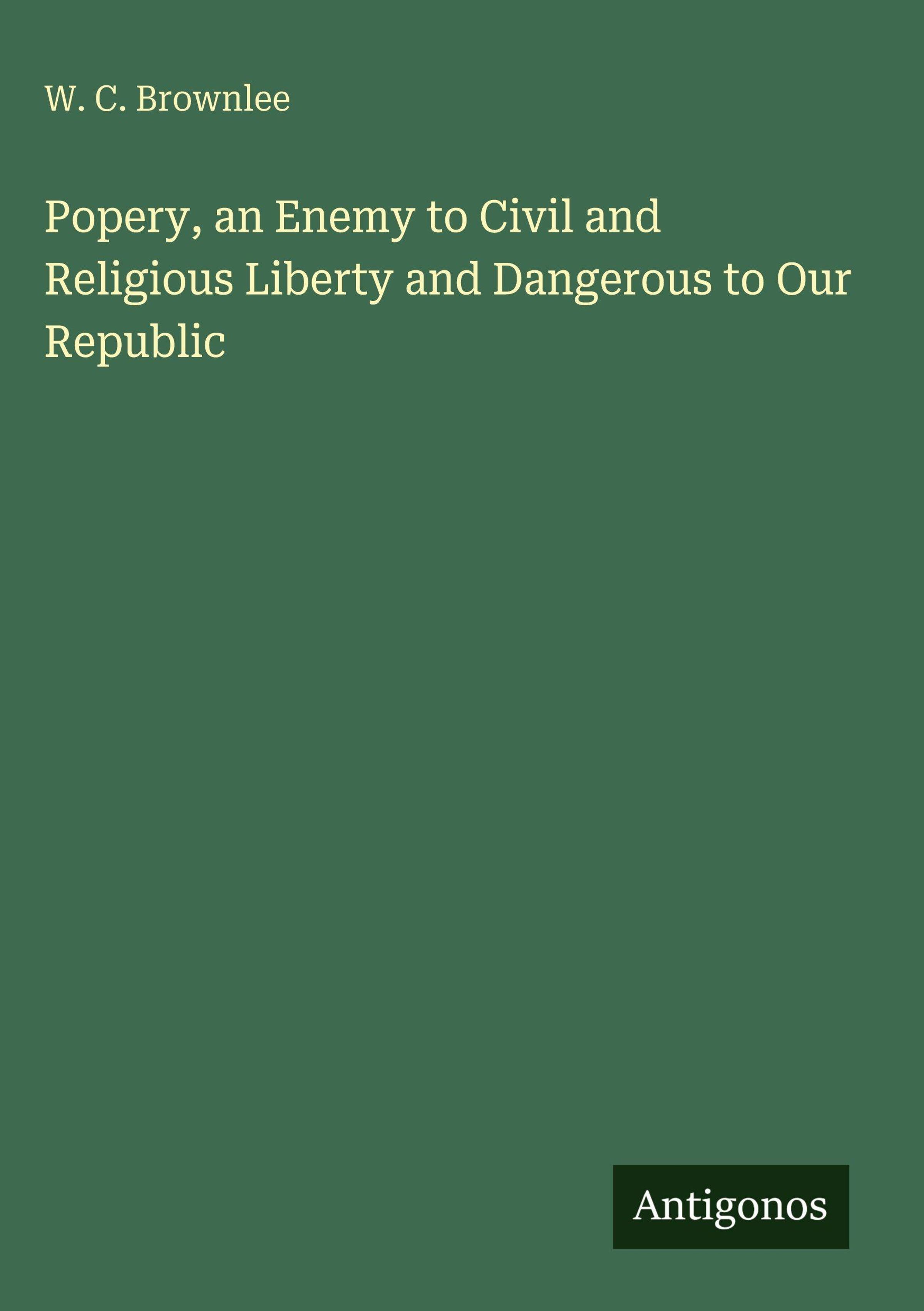 W. C. Brownlee: Popery, an Enemy to Civil and Religious Liberty and Dangerous to Our Republic, Gebunden