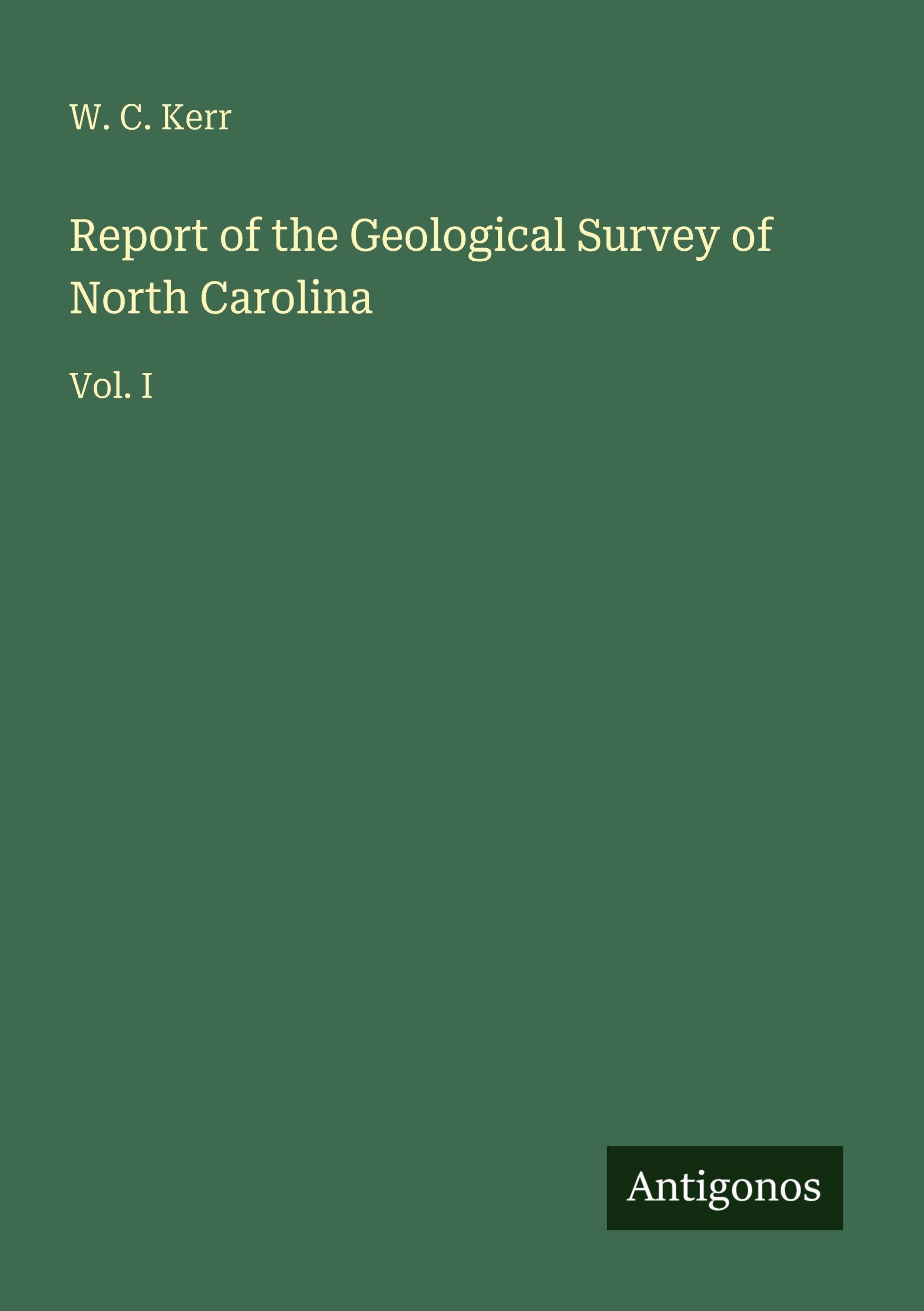 W. C. Kerr: Report of the Geological Survey of North Carolina, Kartoniert / Broschiert