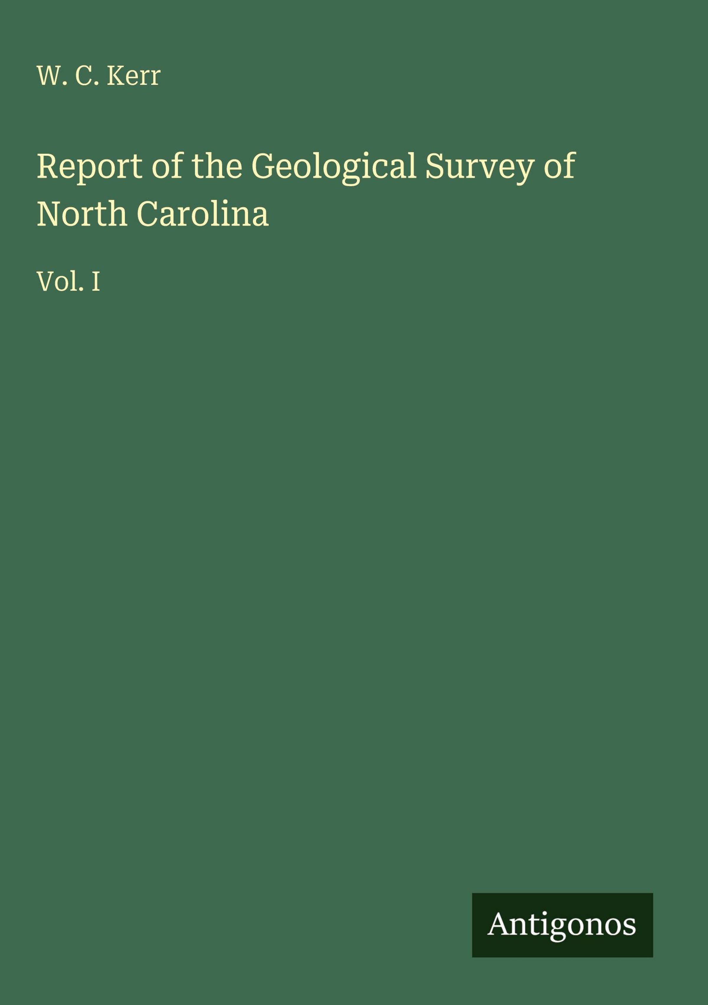 W. C. Kerr: Report of the Geological Survey of North Carolina, Gebunden