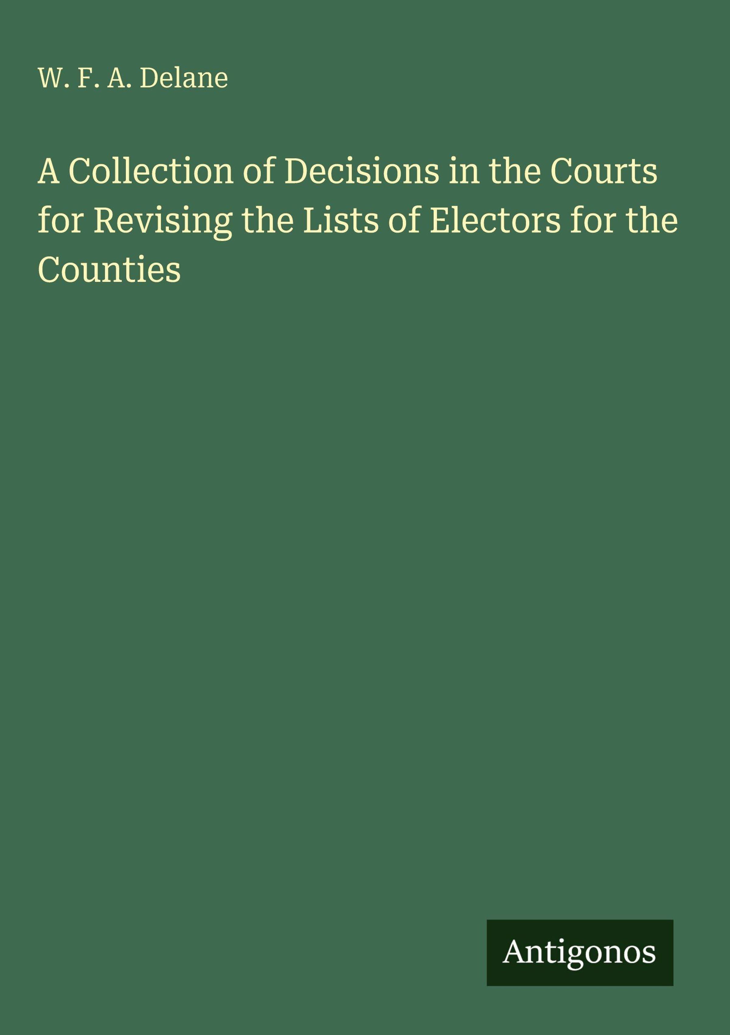 W. F. A. Delane: A Collection of Decisions in the Courts for Revising the Lists of Electors for the Counties, Gebunden