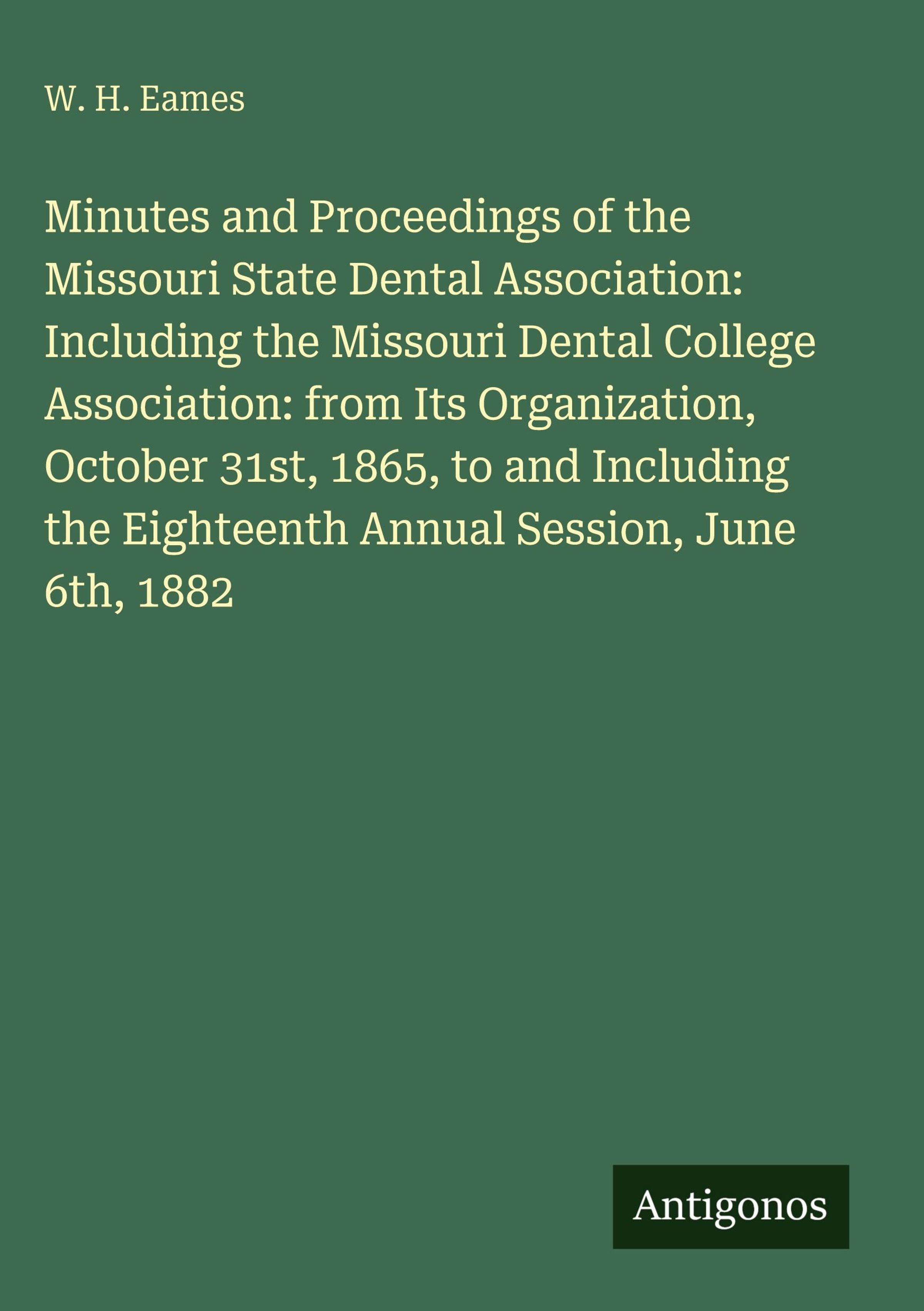 W. H. Eames: Minutes and Proceedings of the Missouri State Dental Association: Including the Missouri Dental..., Gebunden