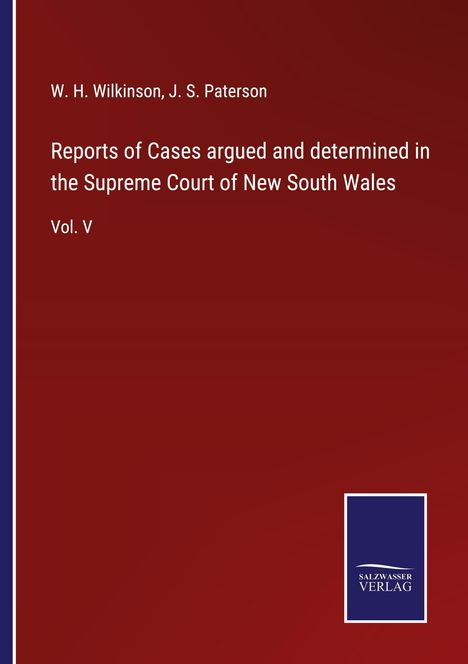 W. H. Wilkinson: Reports of Cases argued and determined in the Supreme Court of New South Wales, Kartoniert / Broschiert