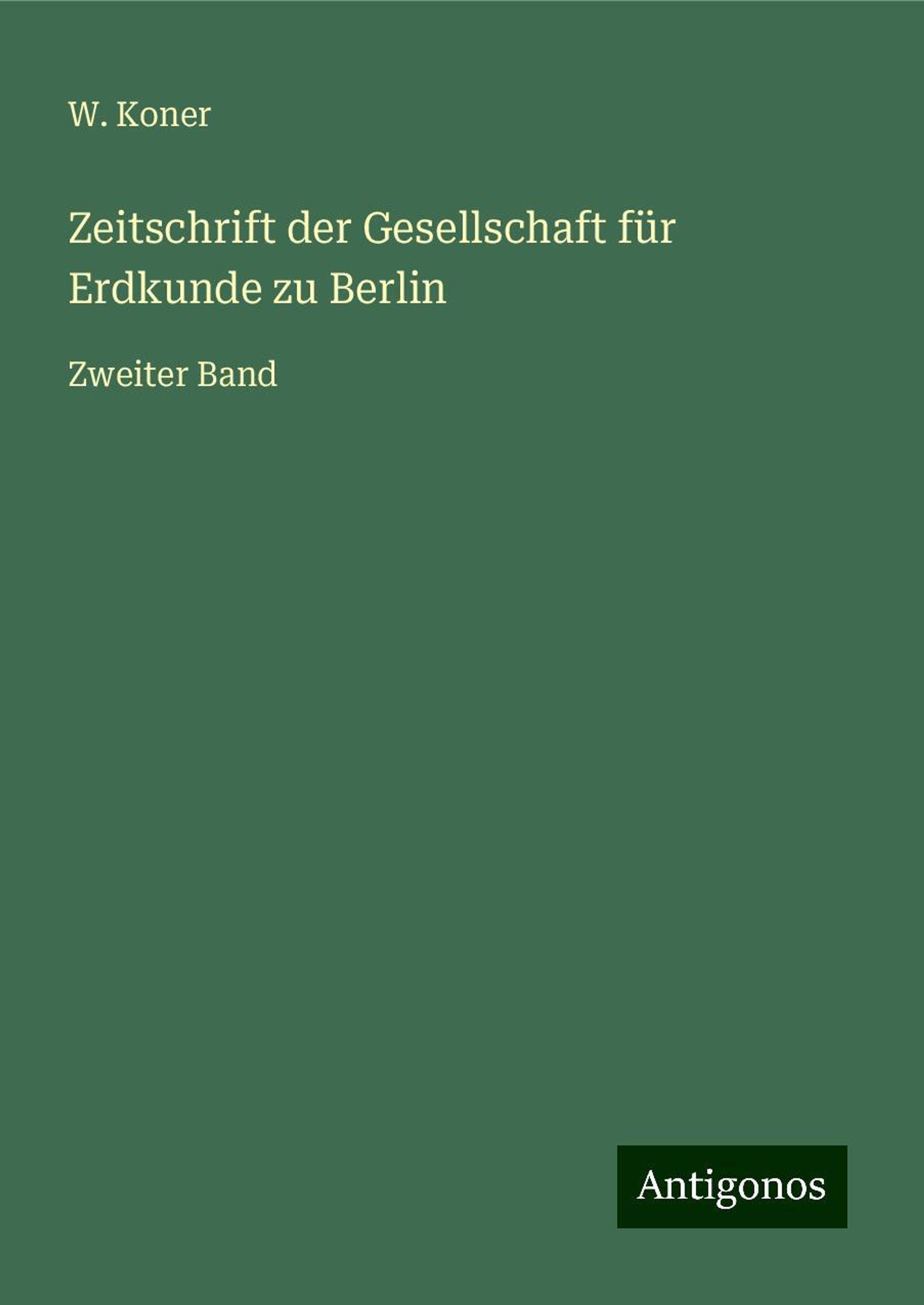 W. Koner: Koner, W: Zeitschrift der Gesellschaft für Erdkunde zu Berli, Fester Einband