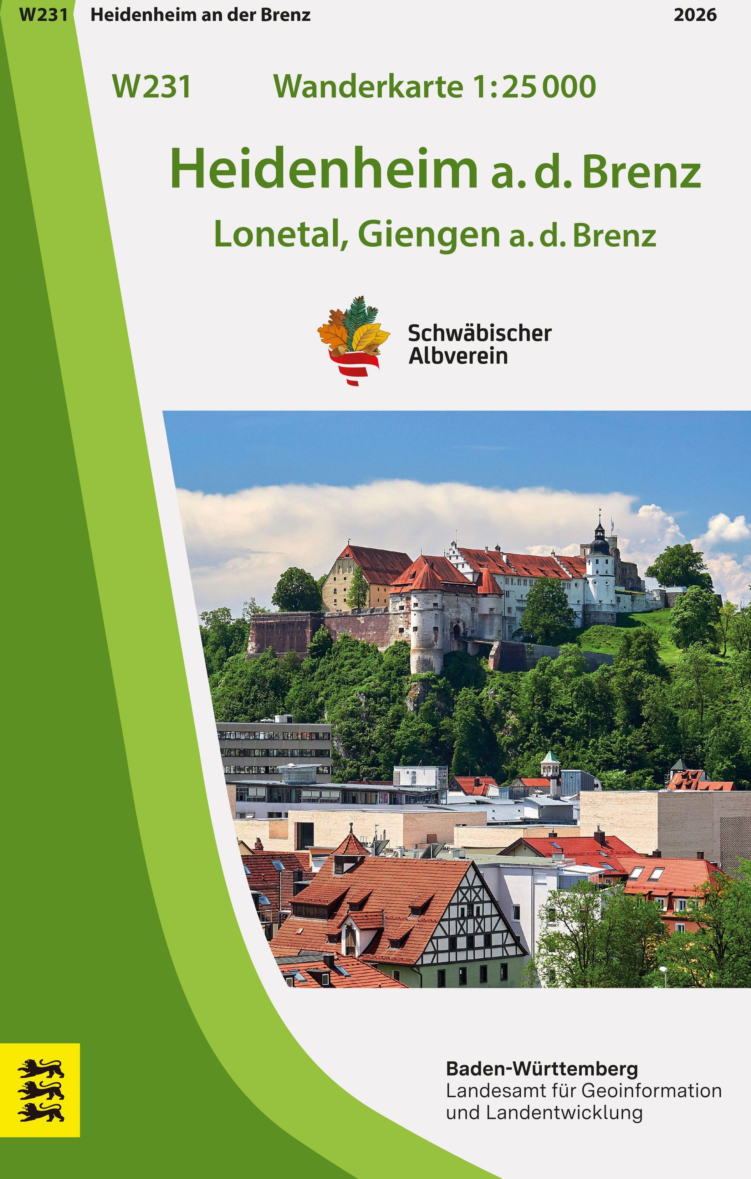 "W231 Wanderkarte 1:25 000 Heidenheim a. d. Brenz, Lonetal, Giengen a. d. Brenz, Schwäbischer Albverein, Baden-Württemberg."