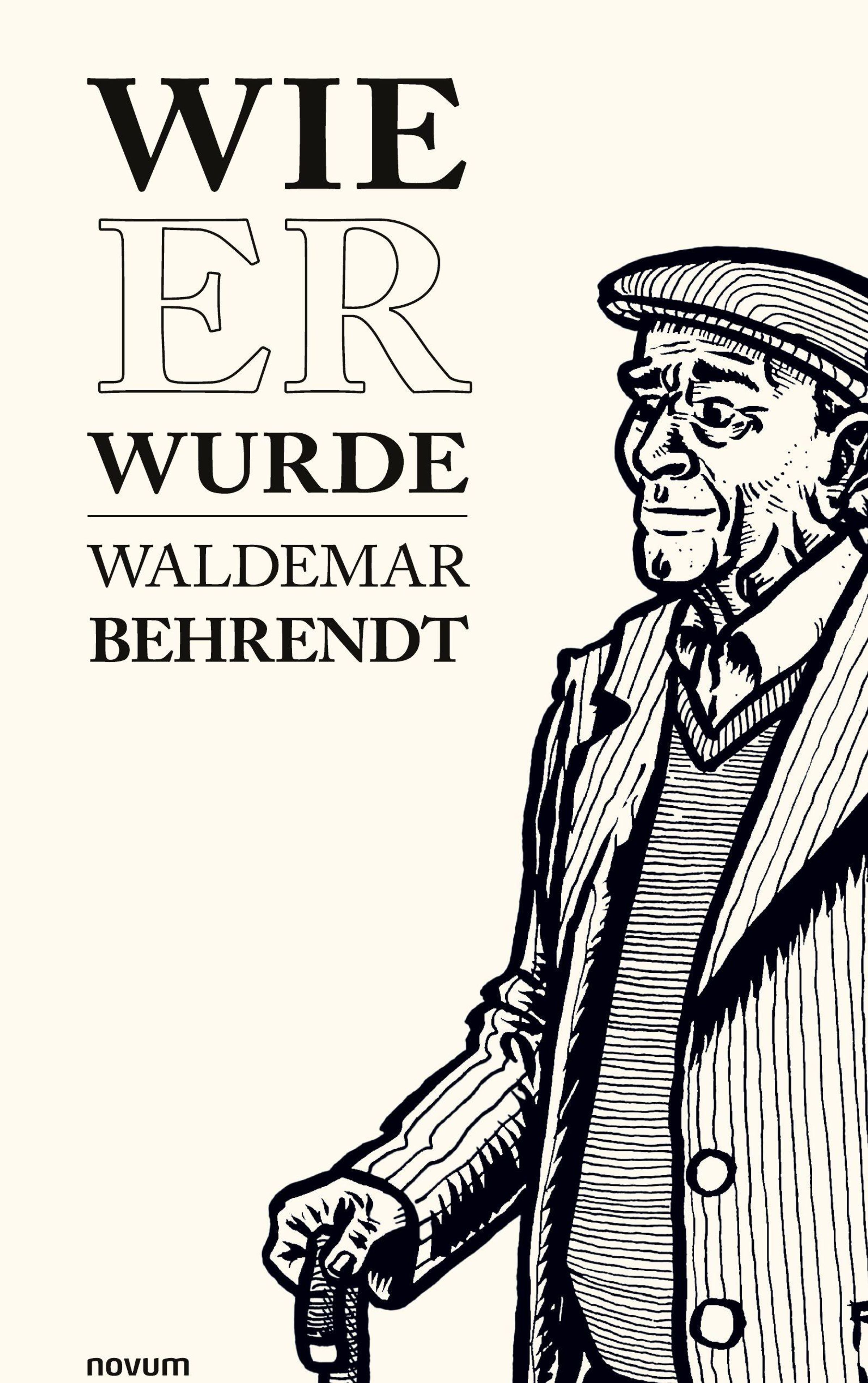 "WIE ER WURDE WALDEMAR BEHRENDT" daneben Illustration eines Mannes mit Mütze und Gehstock., Buch