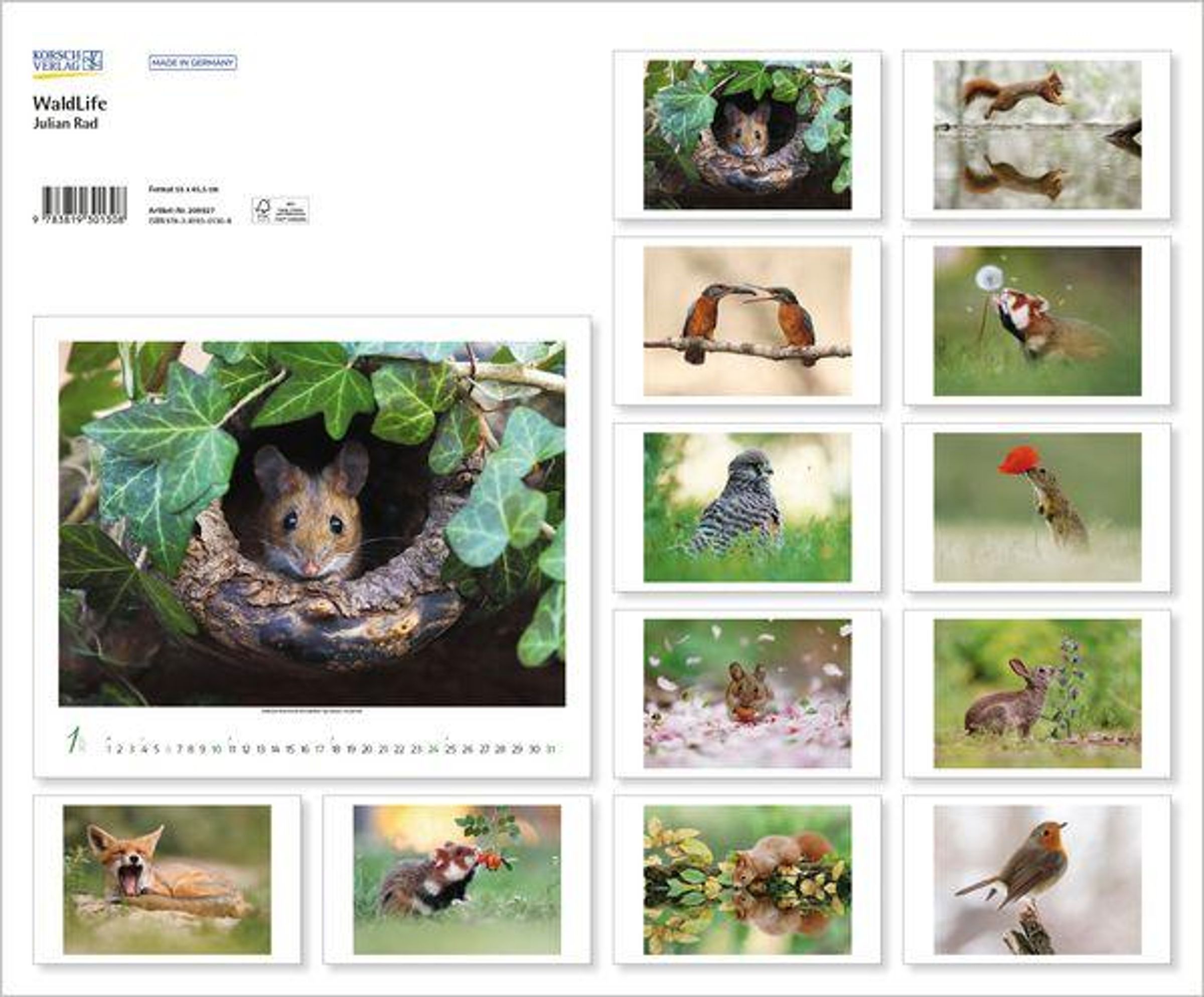 - Großer Wandkalender mit poetischen Aufnahmen einheimischer Wald- und Wildtiere. Querformat: 55 x 45,5 cm