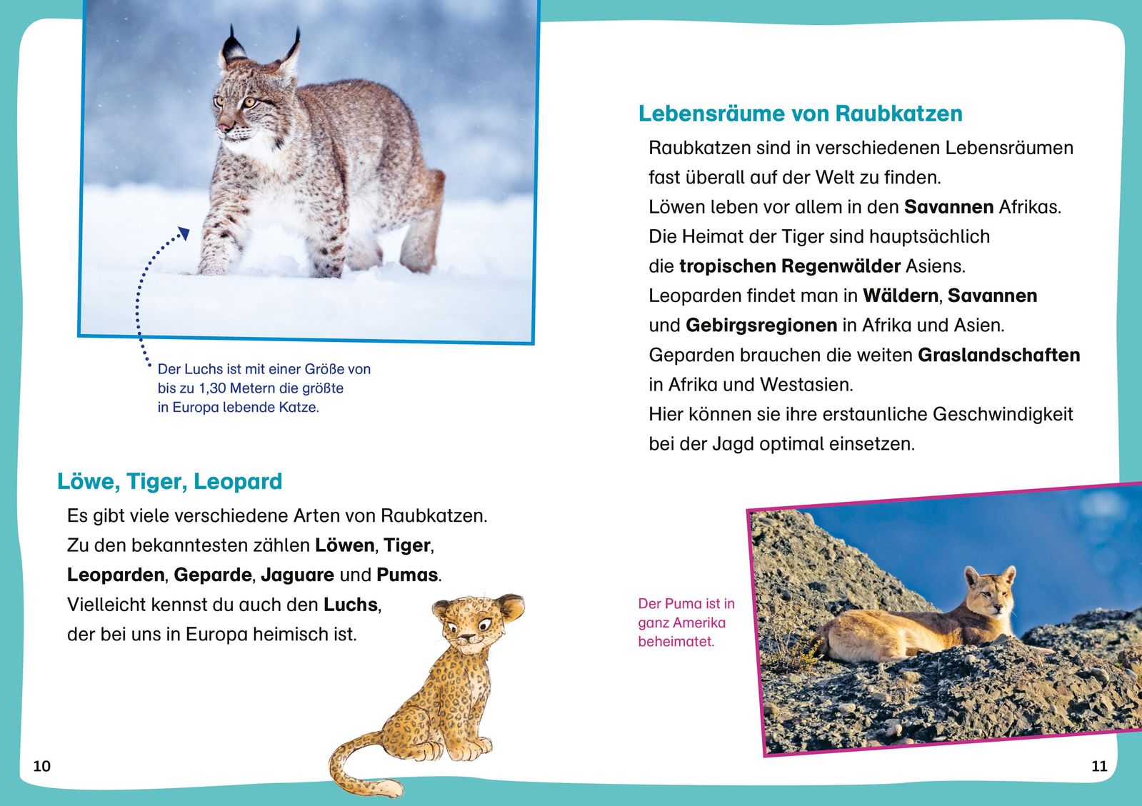 Lesen lernen mit coolen Raubkatzen! Löwen, Tiger, Geparden und weitere spannende Raubkatzen helfen beim Verbessern der Lesekompetenz. Sachtexte liefern spannende Infos über das Leben der Tiere. Lebensräume, Speisepläne, Jagdtechniken und der Nachwuchs werden in den einzelnen Kapitel vorgestellt. Anschließende Rätsel wie Buchstabensalate, Wortschlangen oder Wortgitter helfen dabei, das Gelesene noch besser zu verstehen. Einzigartiges Sachwissen trifft hier auf Rätselspaß und zusammen helfen sie den Erstleser*innen die Lesefähigkeiten zu optimieren.