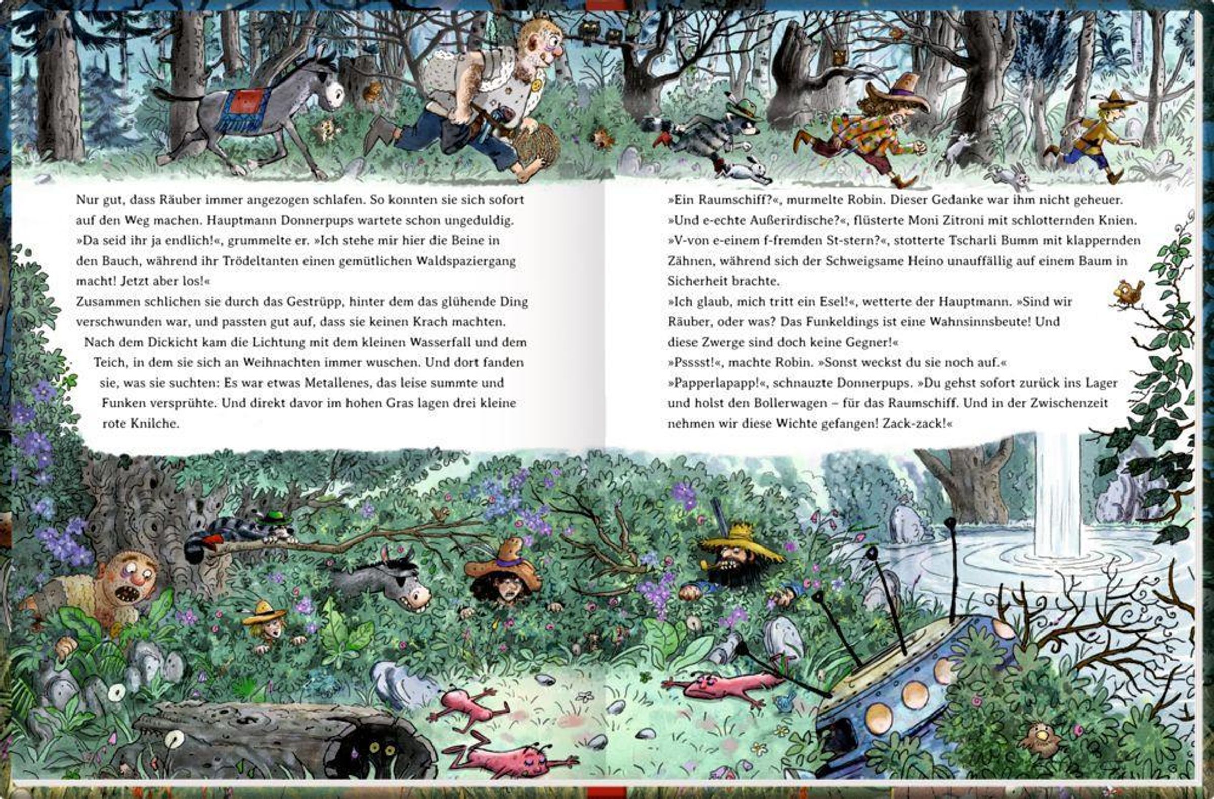 Das lässt sich Räuberhauptmann Donnerpups natürlich nicht bieten. Doch er hat die Rechnung ohne die Außerirdischen und ihre Verkleinerungswaffen gemacht! Zum Glück hat Robin im letzten Moment eine Idee ...