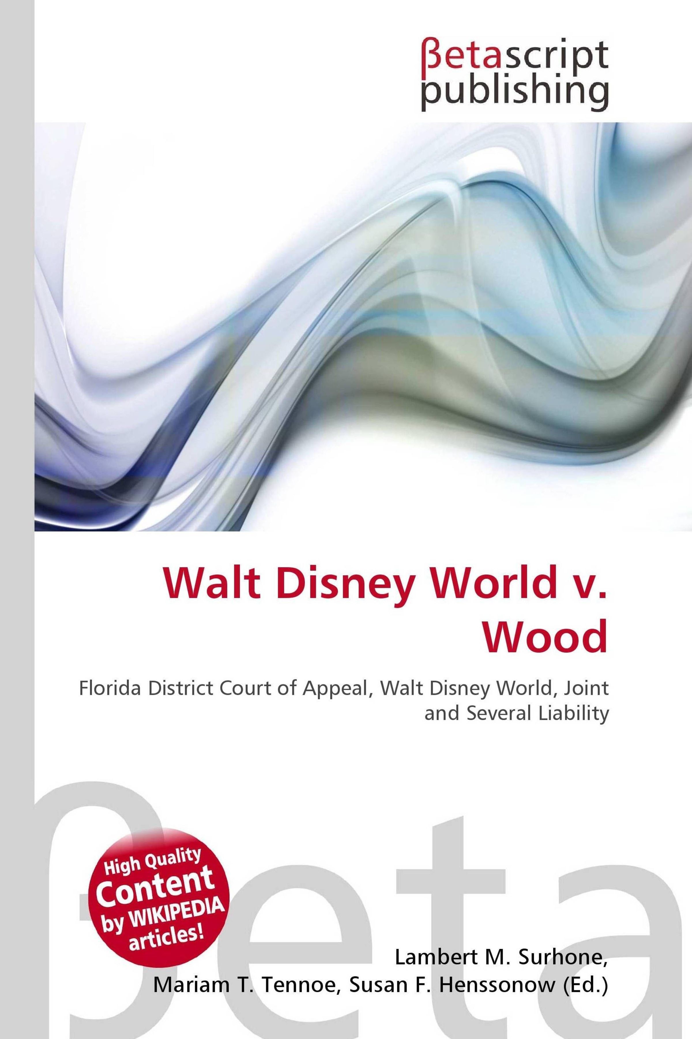 Please note that the content of this book primarily consists of articles available from Wikipedia or other free sources online. Walt Disney World Co. v. Wood, 489 So. 2d 61 (Fla. Dist. Ct. App. 1986) is a court decision by the Florida District Court of Appeal illustrating the principle of joint and several liability. In 1971, Aloysia Wood was injured on the Grand Prix bumper-car ride at Walt Disney World when her then-fiance, Daniel Wood, rammed his car into the rear of hers. The jury assessed her damages at $75, 000. The jury then returned a verdict finding Aloysia Wood 14% at fault, Daniel Wood 85% at fault, and Disney 1% at fault. The court ordered Disney to pay 86% of the damages - its percentage plus the husband's percentage - because the husband was unable to pay his portion. This case is sometimes cited in calls for tort reform.