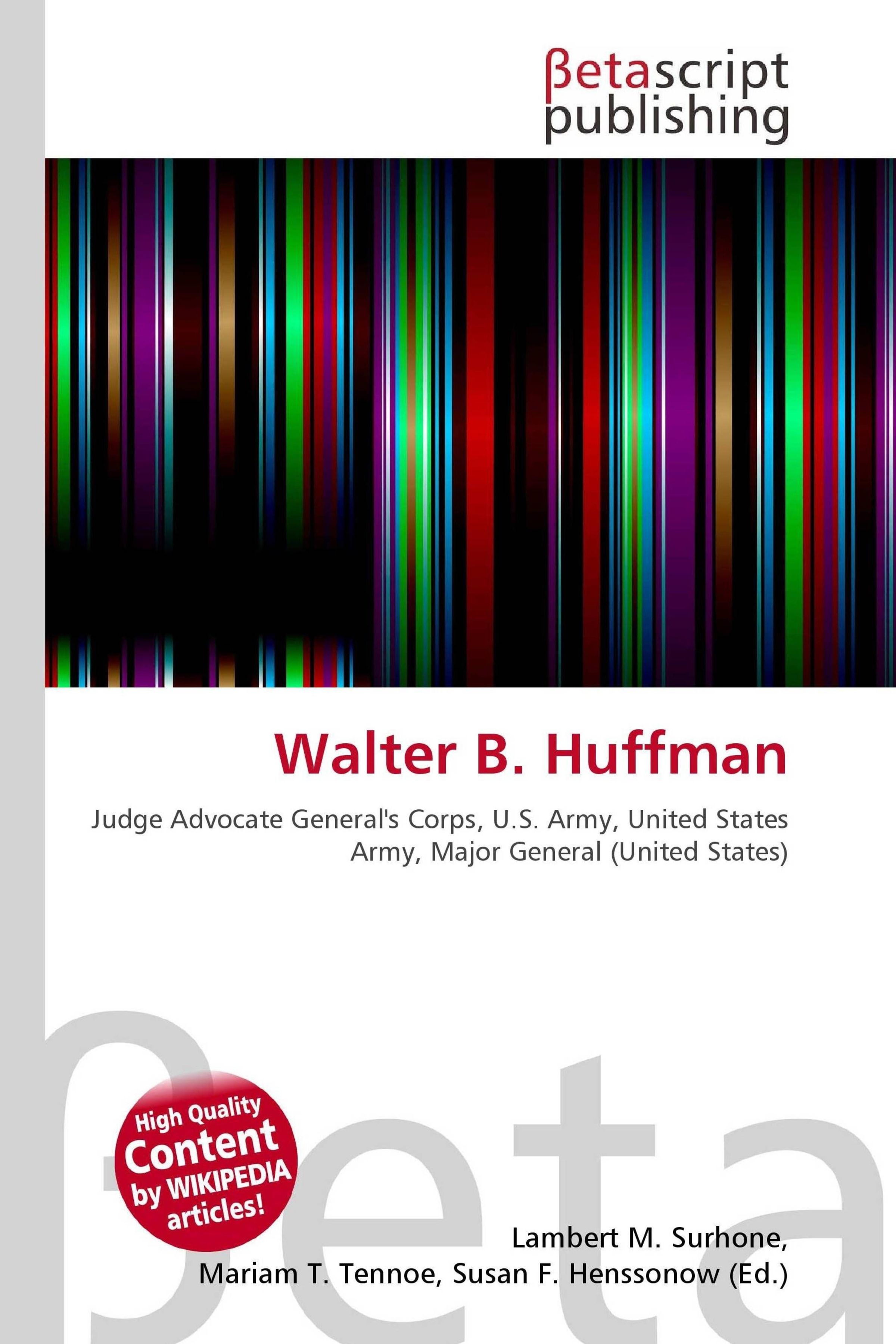 Please note that the content of this book primarily consists of articles available from Wikipedia or other free sources online. Major General Walter B. Huffman was an American military lawyer and was the Judge Advocate General of the United States Army from August 5, 1997 until September 30, 2001. He has served as dean of the Texas Tech University School of Law since 2002.The Judge Advocate General's Corps of the United States Army is composed of Army officers who are also lawyers and who provide legal services to the Army at all levels of command. The Judge Advocate General's Legal Service includes judge advocates, warrant officers, paralegal noncommissioned officers and junior enlisted personnel, and civilian employees.