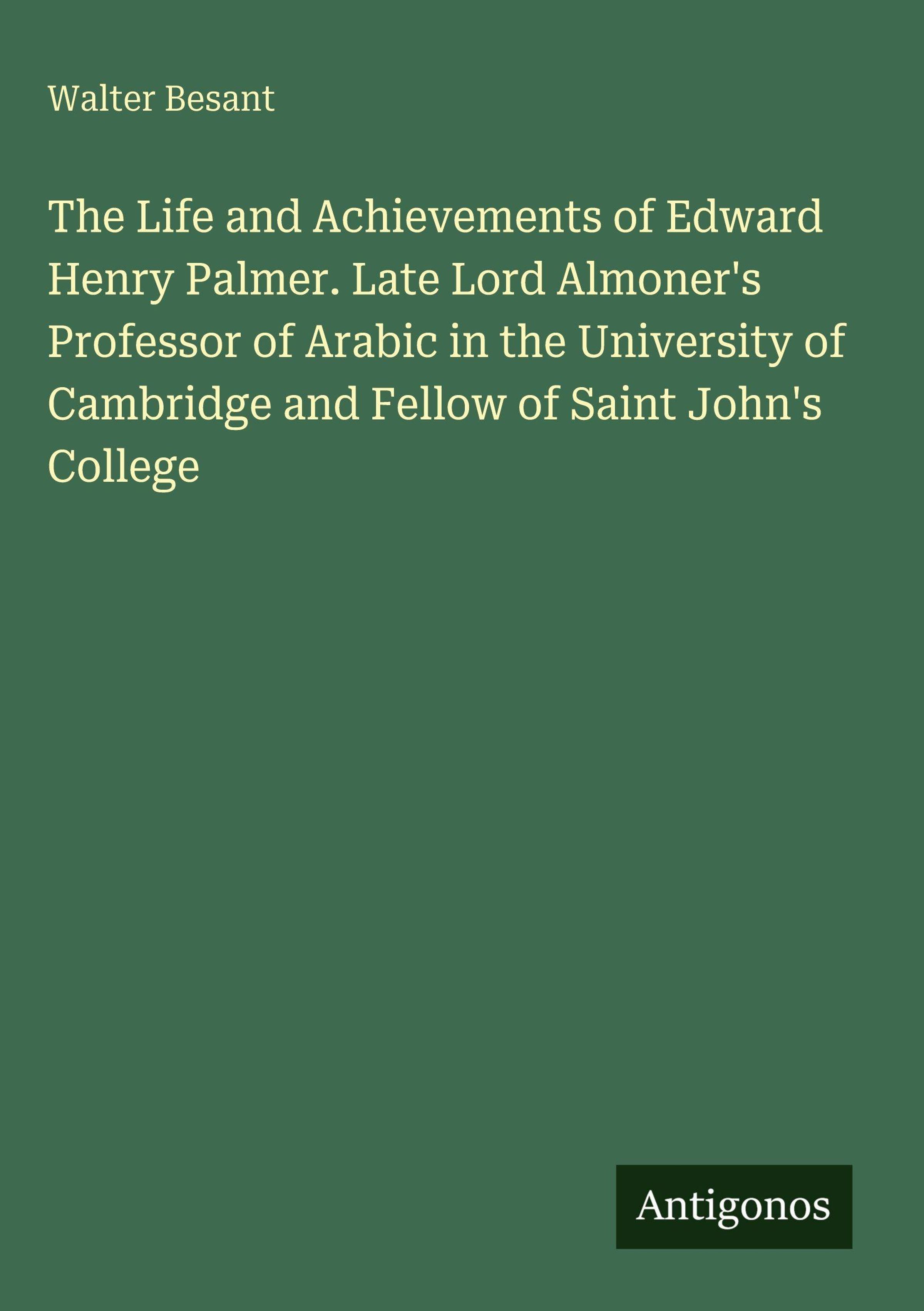 The Life and Achievements of Edward Henry Palmer. Late Lord Almoner's Professor of Arabic in the University of Cambridge and Fellow of Saint John's College