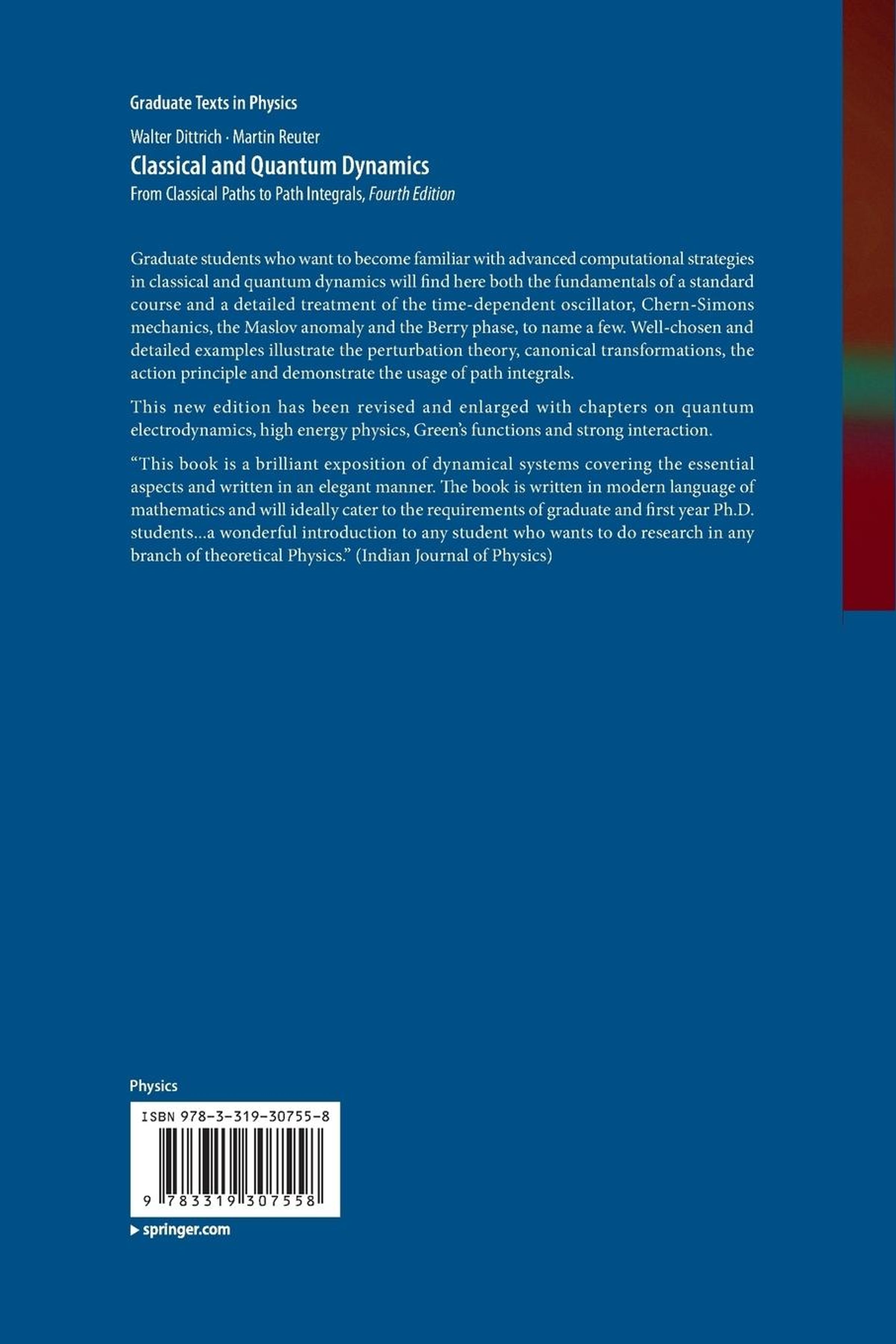 Graduate students who want to become familiar with advanced computational strategies in classical and quantum dynamics will find here both the fundamentals of a standard course and a detailed treatment of the time-dependent oscillator, Chern-Simons mechanics, the Maslov anomaly and the Berry phase, to name a few. Well-chosen and detailed examples illustrate the perturbation theory, canonical transformations, the action principle and demonstrate the usage of path integrals. This new edition has been revised and enlarged with chapters on quantum electrodynamics, high energy physics, Green¿s functions and strong interaction. "This book is a brilliant exposition of dynamical systems covering the essential aspects and written in an elegant manner. The book is written in modern language of mathematics and will ideally cater to the requirements of graduate and first year Ph. D. students...a wonderful introduction to any student who wants to do research in any branch of theoretical Physics." (Indian Journal of Physics)