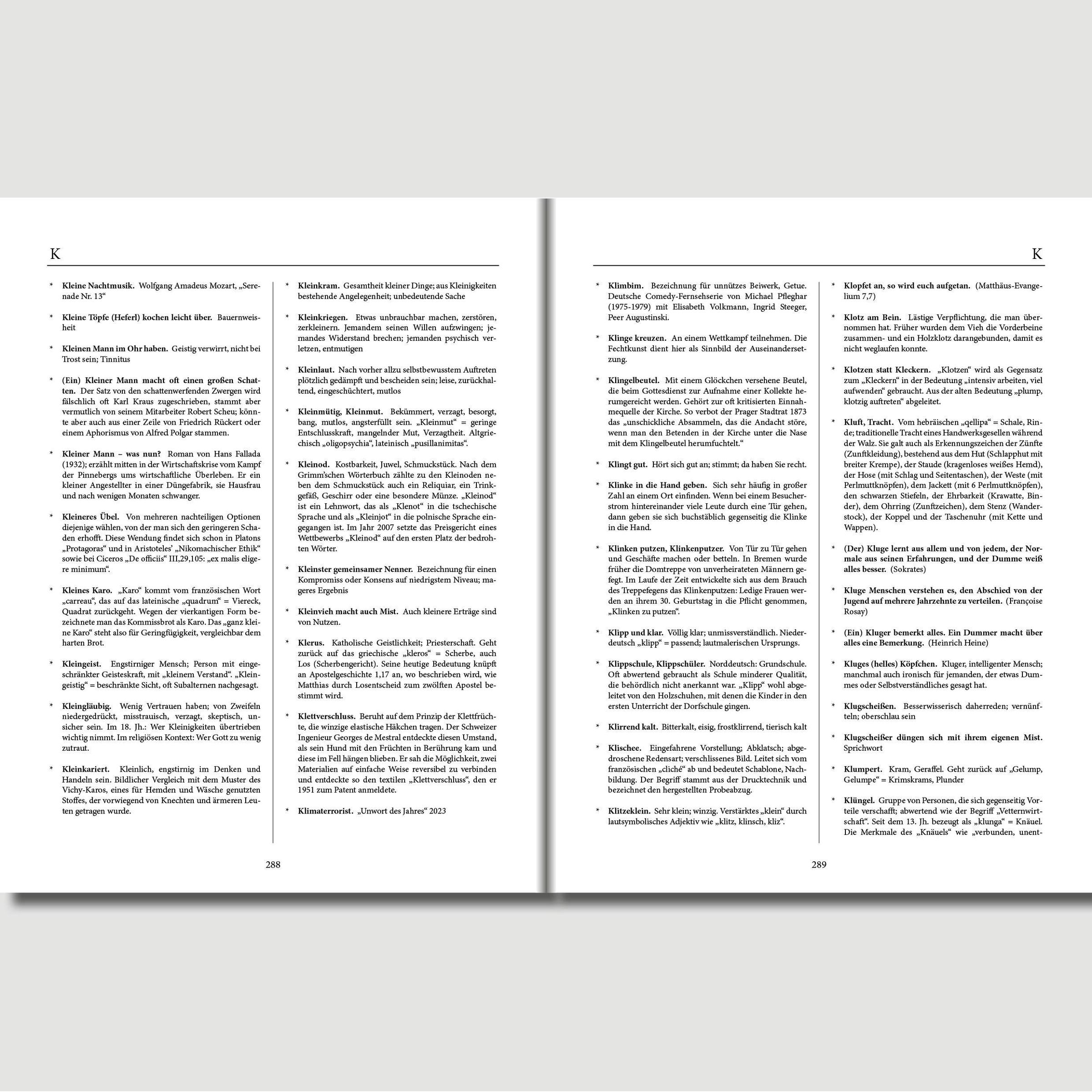Inhaltlich stehen Redensarten, Sprichwörter, halb vergessene und zusammengesetzte Worte, Umgangssprachliches, Wissenswertes sowie Aphorismen und Zitate im Vordergrund. In ihnen bildet sich ein breites Spektrum einprägsamer Bilder und gehaltvoller Bedeutungen ab, die einen Großteil unserer Gedankenwelt und Kommunikation ausmachen.