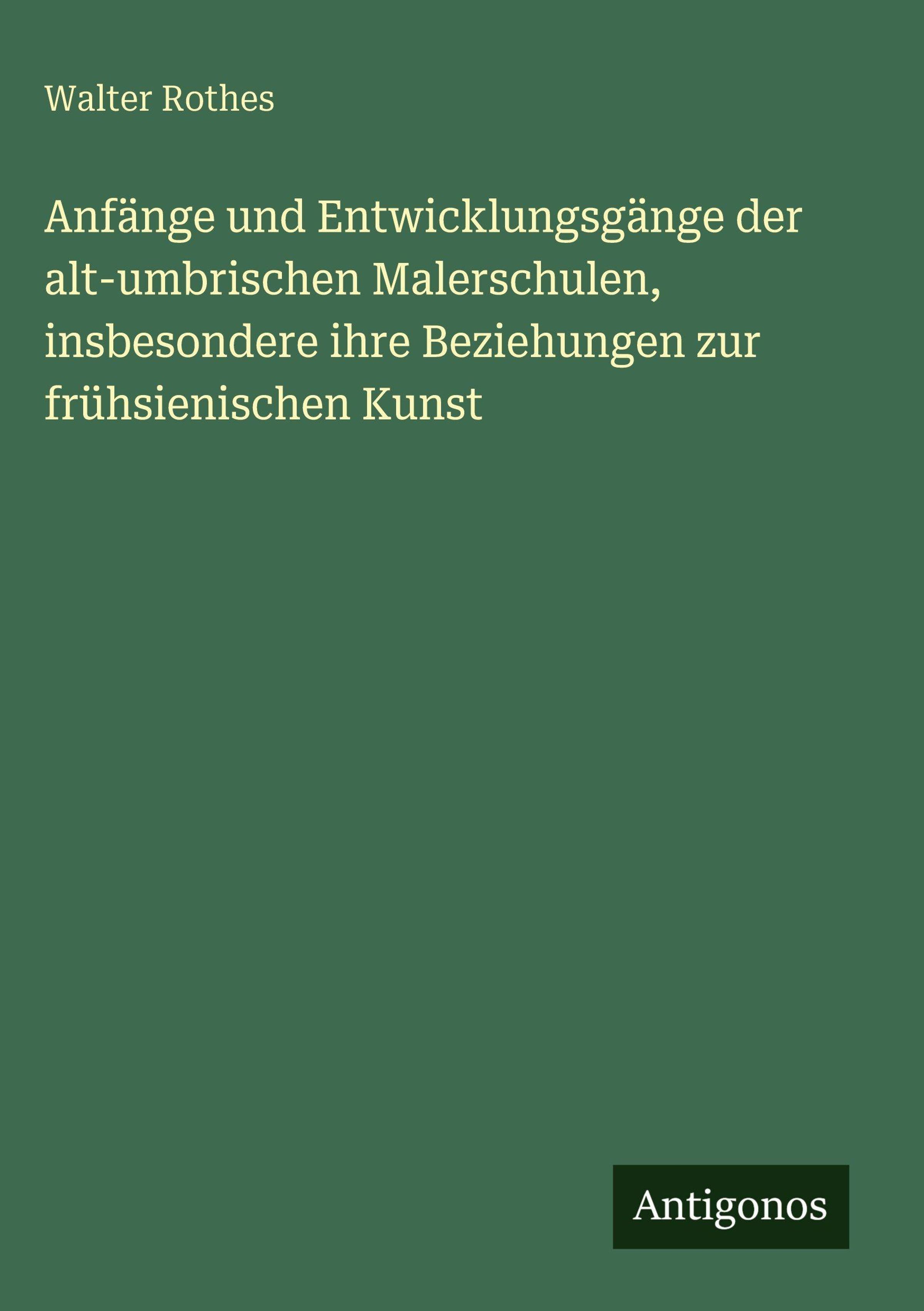 Walter Rothes: Anfänge und Entwicklungsgänge der alt-umbrischen Malerschulen, insbesondere ihre Beziehungen zur..., Gebunden