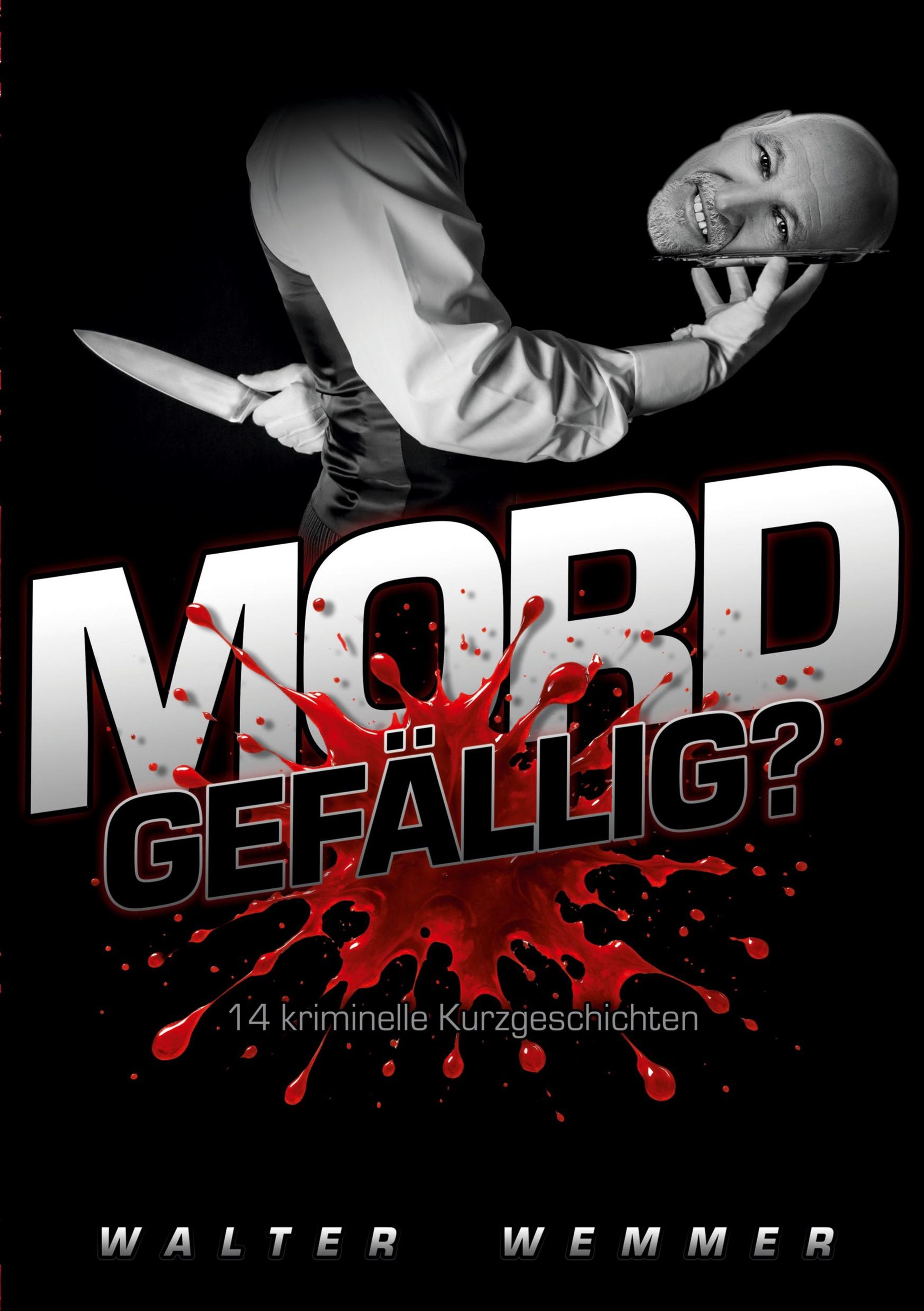"MORD GEFÄLLIG? 14 kriminelle Kurzgeschichten, WALTER WEMMER". Ein Kellner mit Messer, blutiger Spritzfleck., Buch
